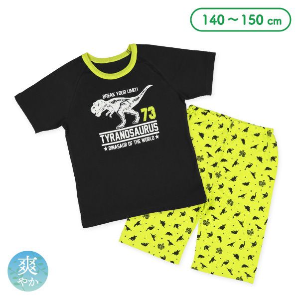 日本西松屋 - 清爽短袖家居服/睡衣-恐龍-黃x黑