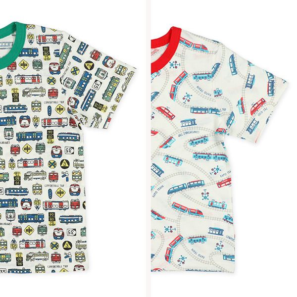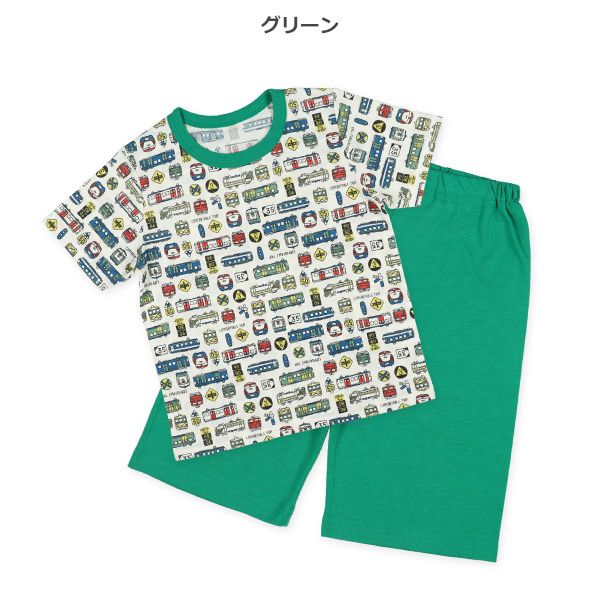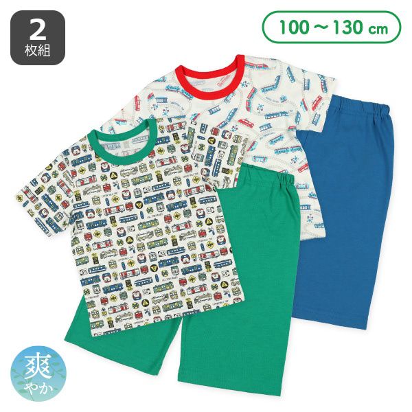 日本西松屋 - 清爽短袖家居服/睡衣(2套組)-火車-藍x綠