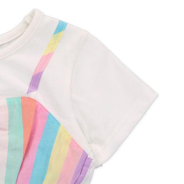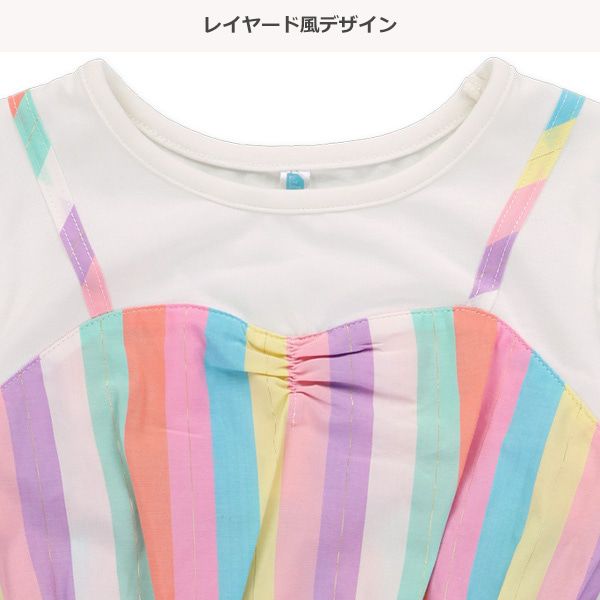 ![日本西松屋 - 華夫格異素材絲帶長袖上衣-白x藍紫]()