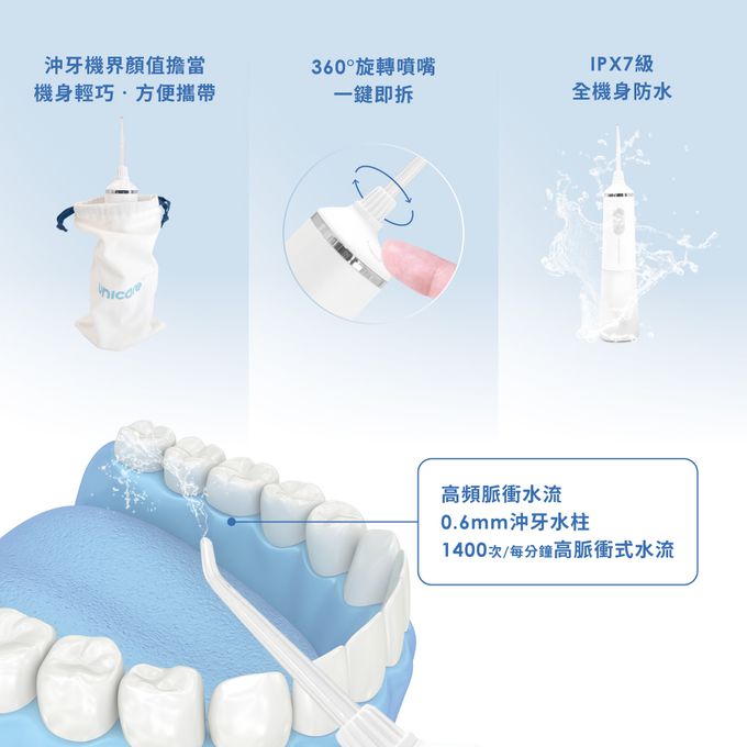 注意: 沖牙機為非醫療用品,有任何口腔疾病請洽詢專業醫師。