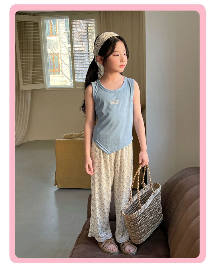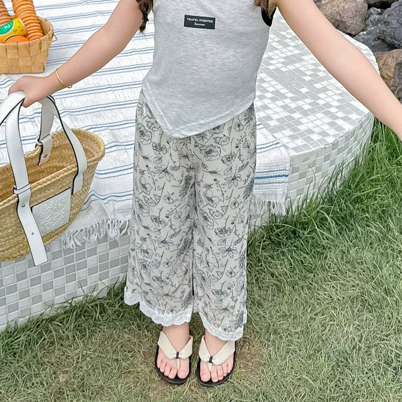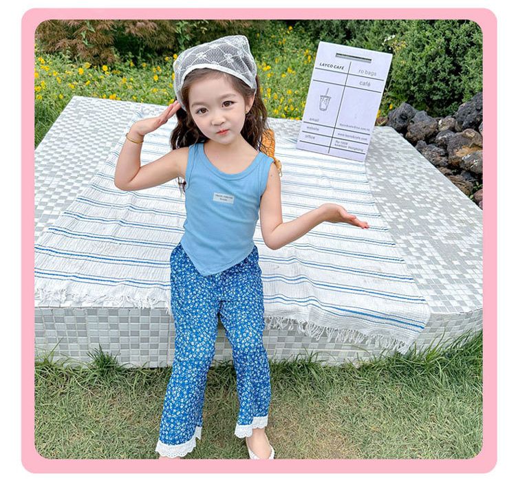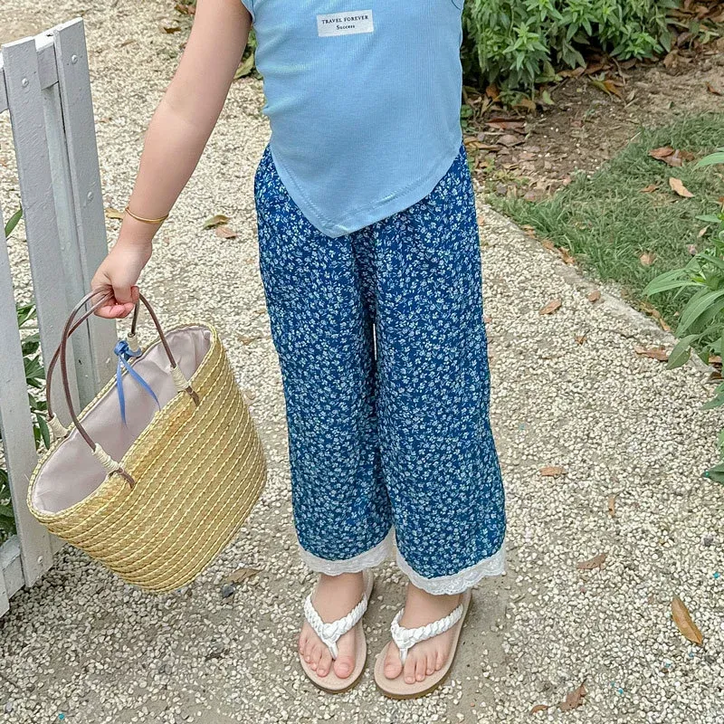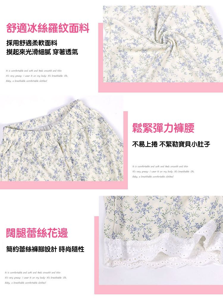 冰絲涼感蕾絲花邊九分睡褲/家居服-藍底碎花