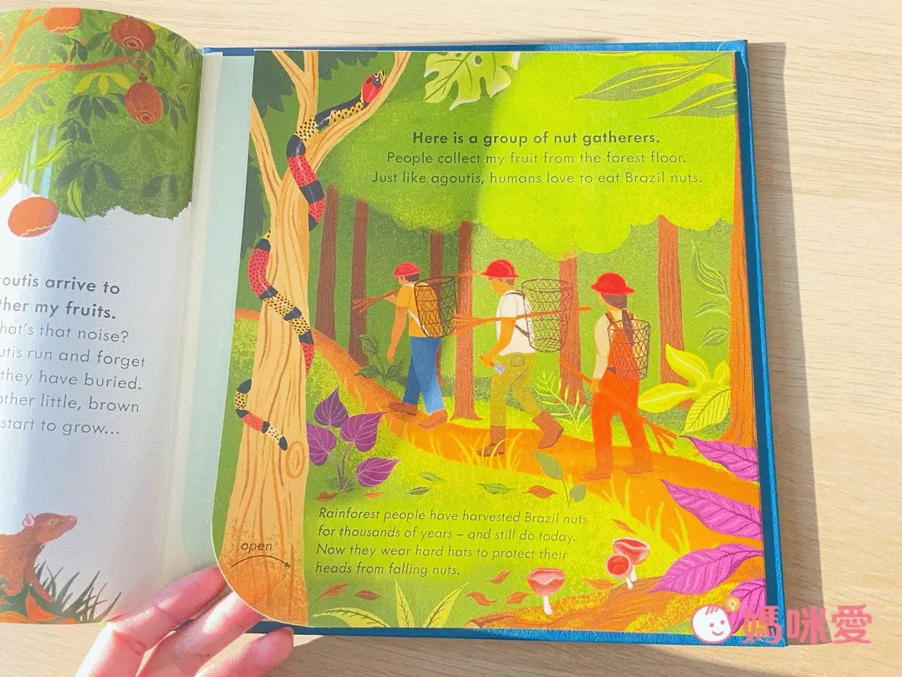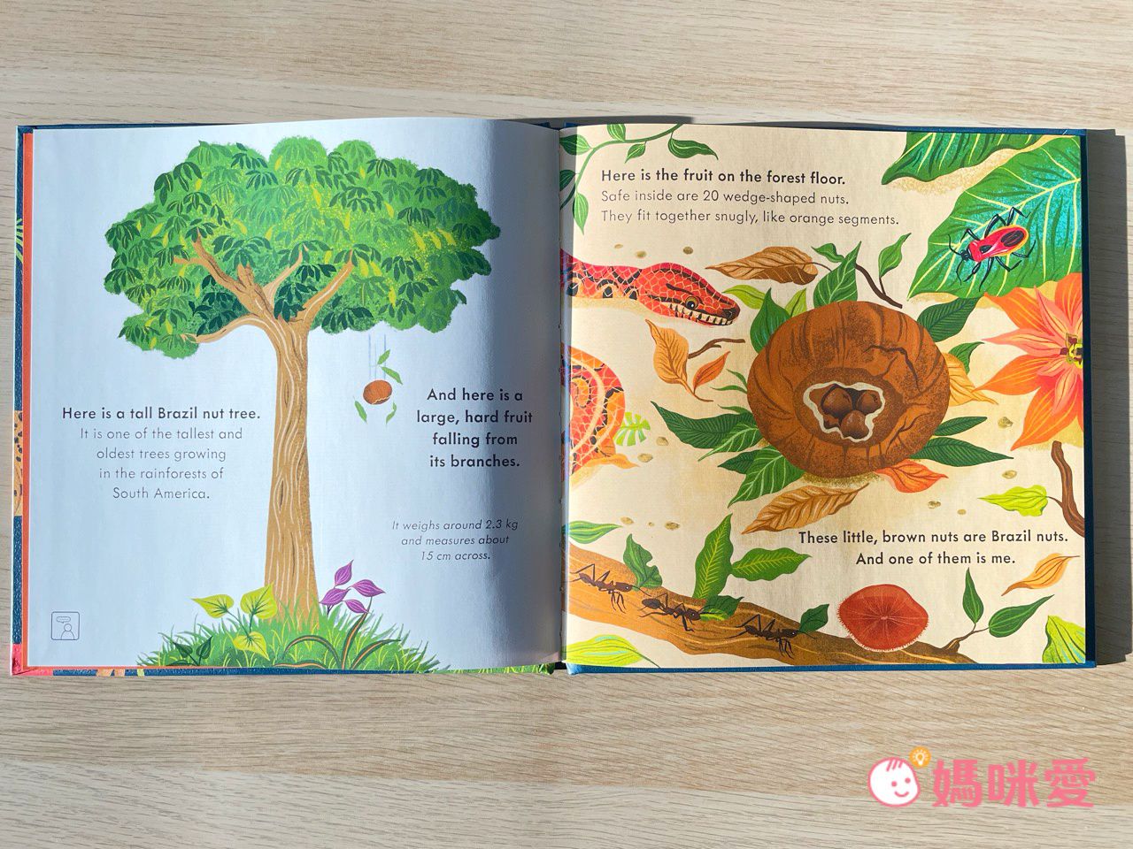 剛好最近王美也會問我像是根莖類是怎麼生長的,我們也有自己種植一些小作物,但這些都不能讓她看到地底下的狀態。藉由這本小小的棕色堅果就能讓她知道這些更多的細節了!