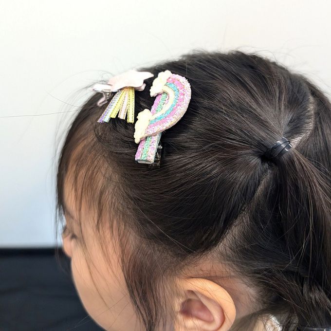 還有閃閃亮亮的粉色彩虹髮夾可挑選喔!兩款一起搭配,好運加倍!