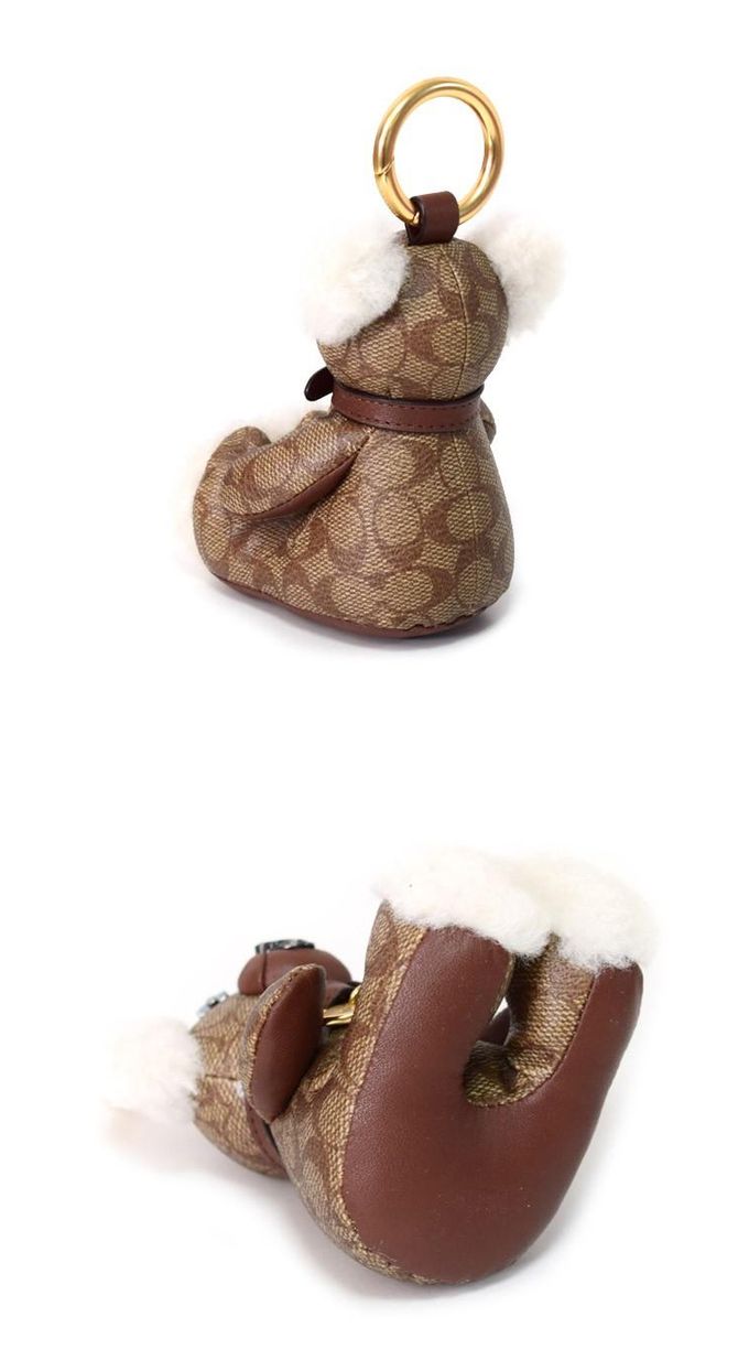 品名:經典LOGO印花皮革小熊坐姿吊飾