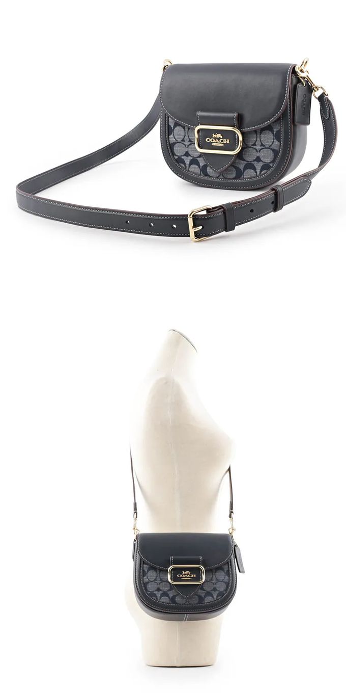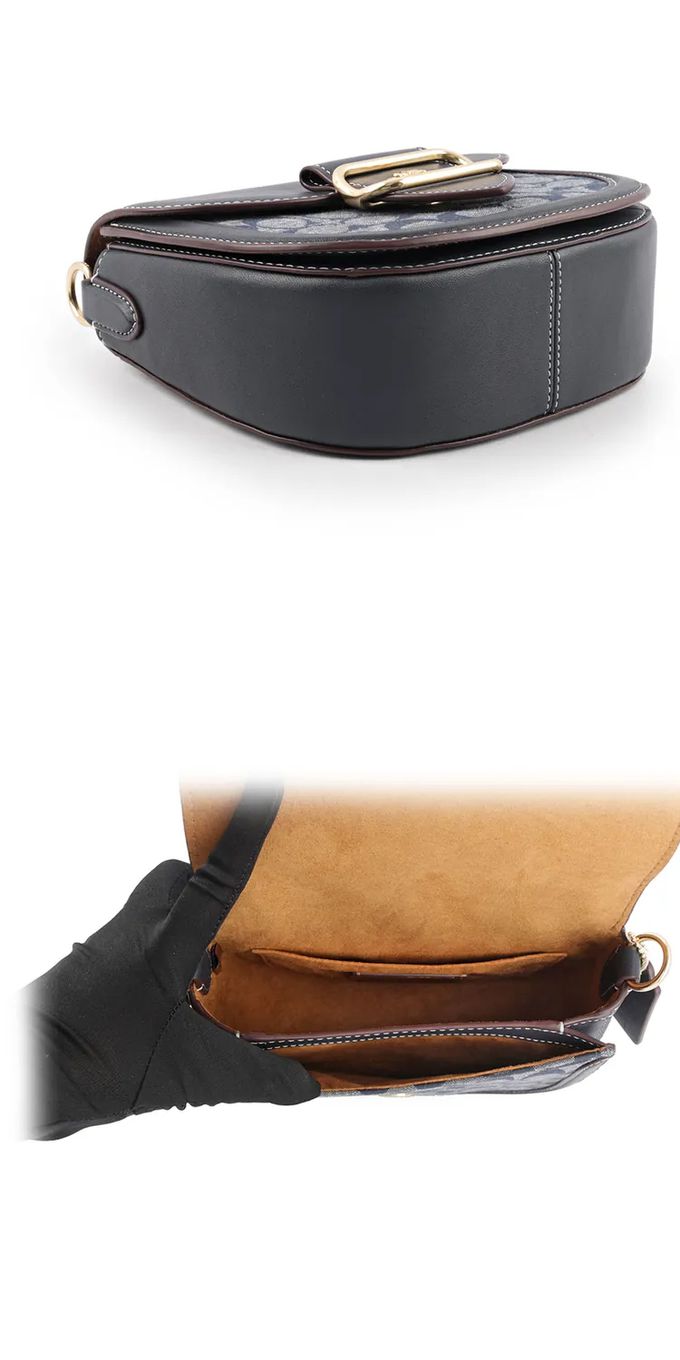 Morgan 馬車LOGO織布拼接皮革馬鞍包 (深藍)