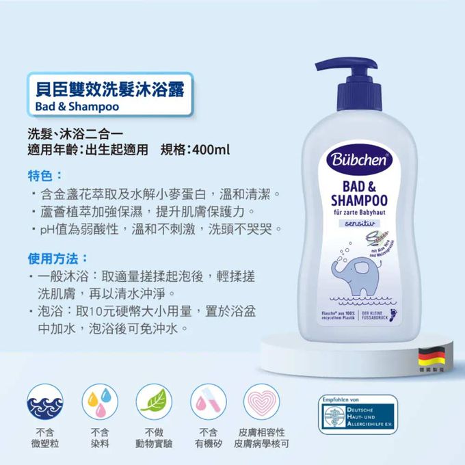 【德國Bubchen 貝臣】保濕洗髮沐浴露