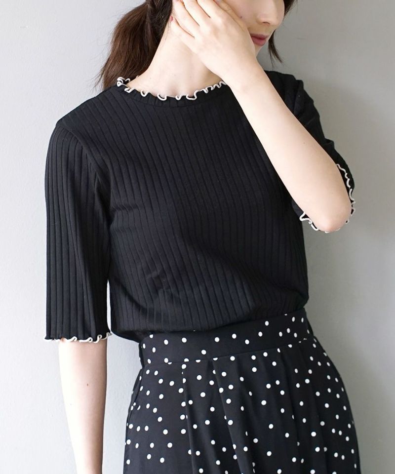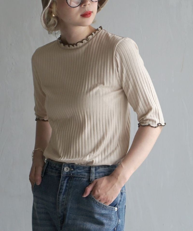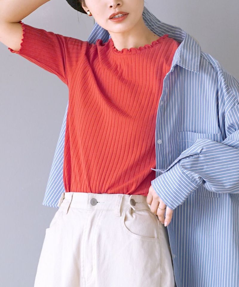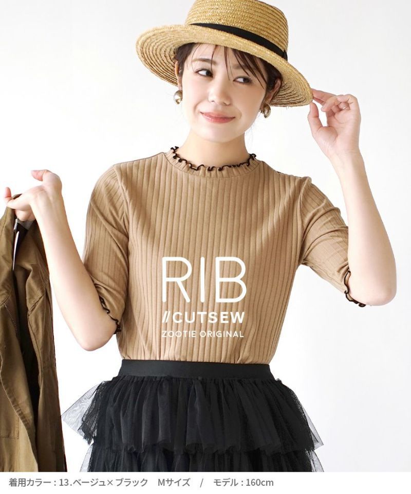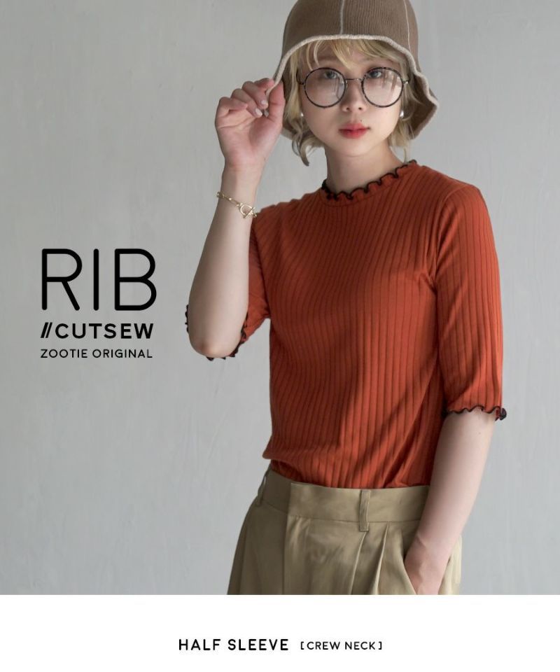 日本 zootie - [熱銷款]木耳羅紋修身短袖上衣-磚紅x黑滾邊