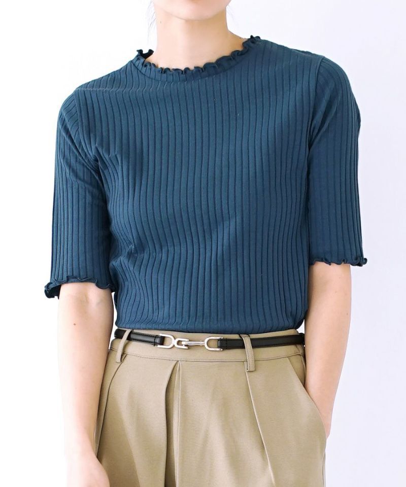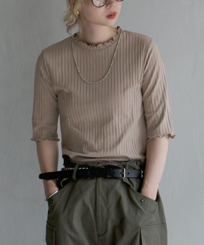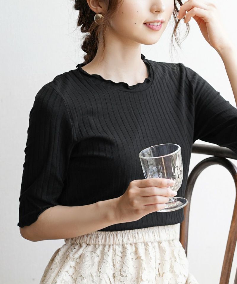 • 品名:[熱銷款]木耳羅紋修身短袖上衣