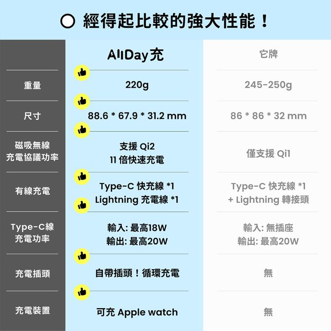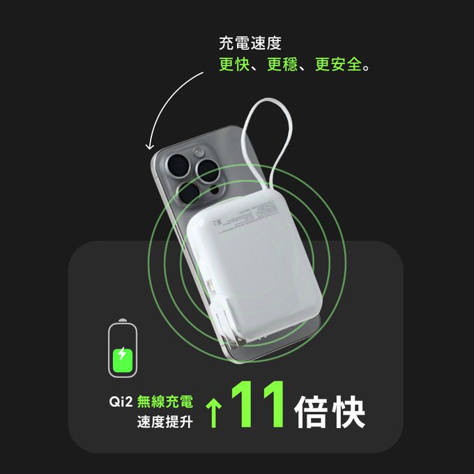 • 品名:⚡有標示wh AllDay充 10000mAh Qi2 磁吸無線充行動電源