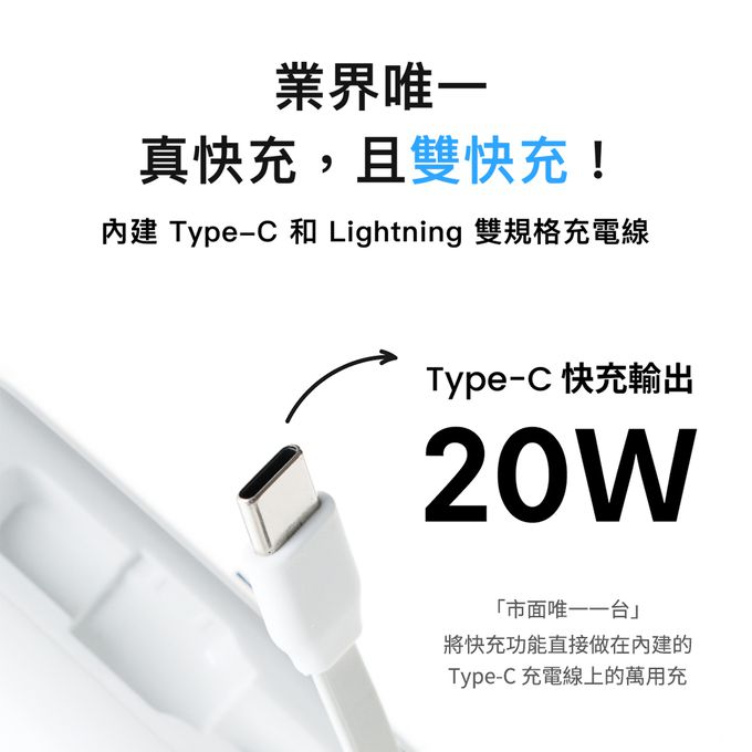 Type-C充電線輸出:5V⎓3A / 9V⎓2.22A / 12V⎓1.67A (最高20W)