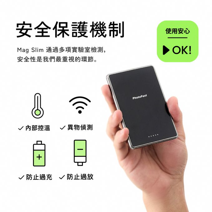 PhotoFast - ✂️附wh貼紙 MAGSLIM2 5000mAh Qi2 超薄磁吸無線充行動電源-晶曜黑