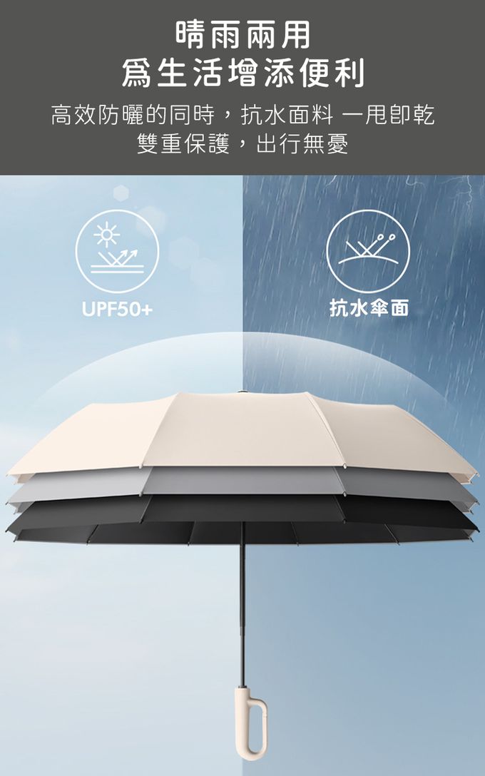 品名:旋轉扣式正向自動勾勾傘/折疊傘/遮陽傘 (買一送一)