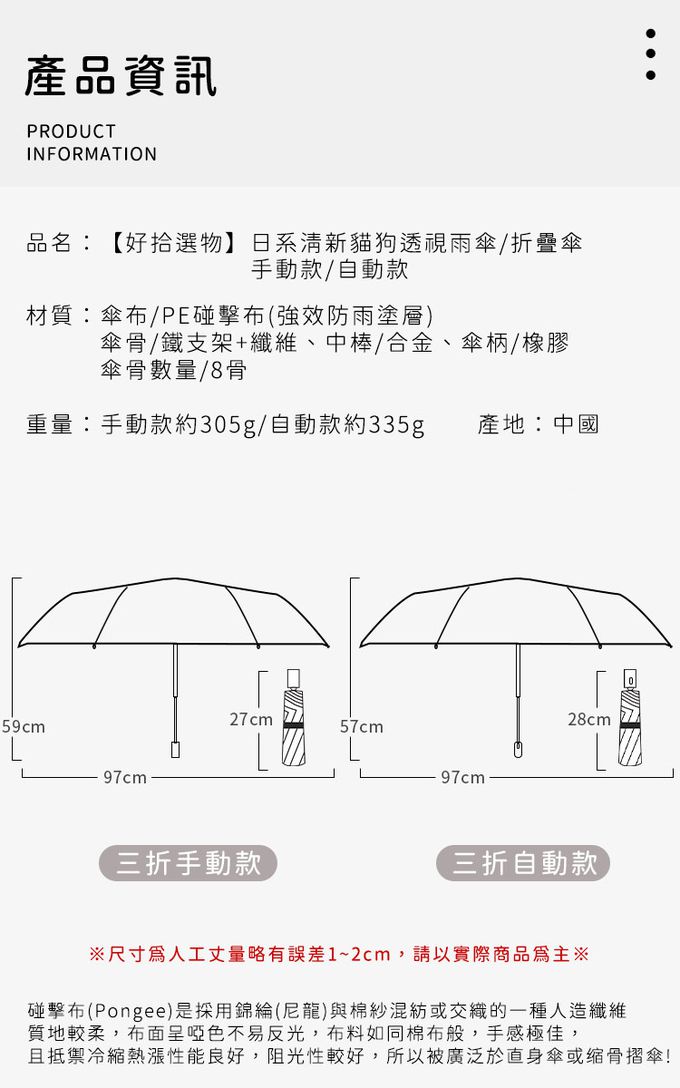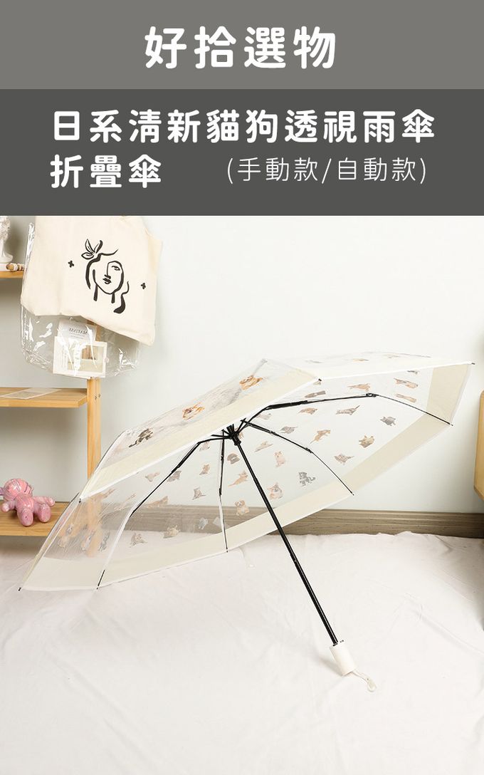 品名:日系清新貓狗透視雨傘/折疊傘 (買一送一)