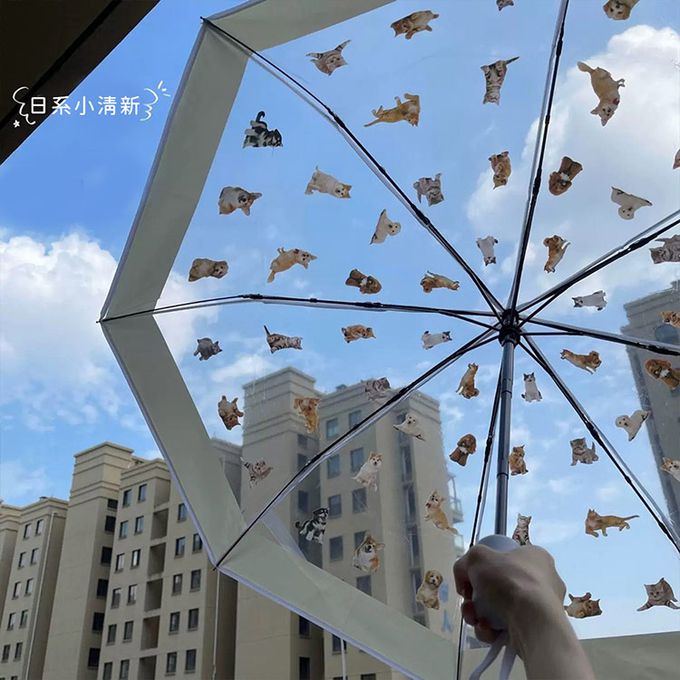 日系清新貓狗透視雨傘/折疊傘 (買一送一)