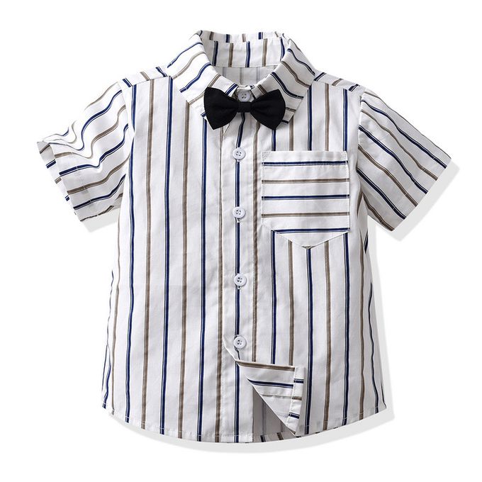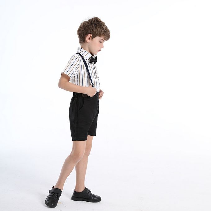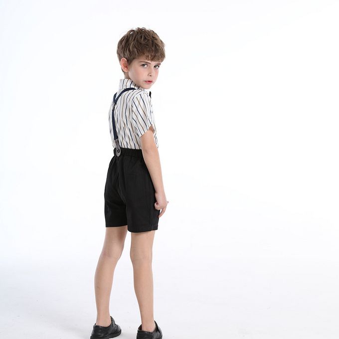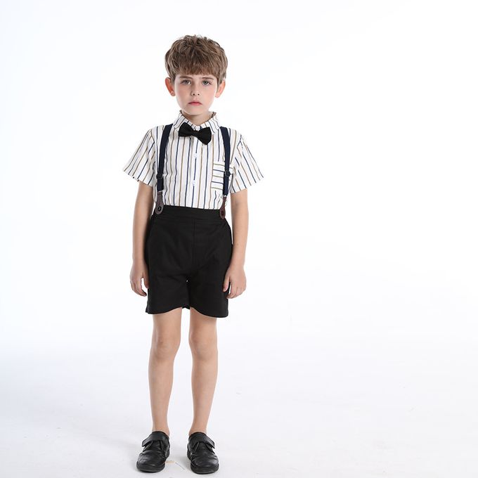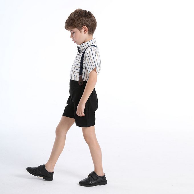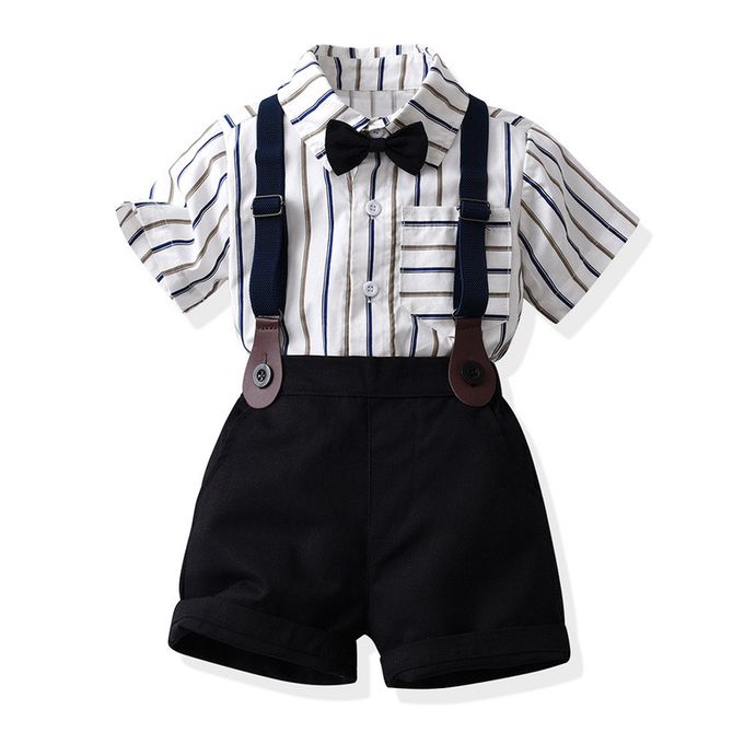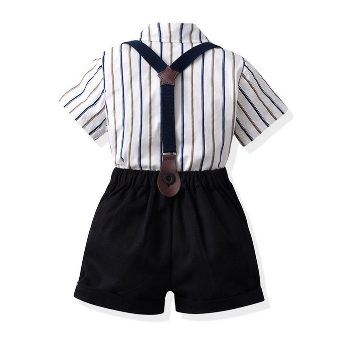 TemDoger - 小紳士短袖+短褲套裝-千鳥格-白色