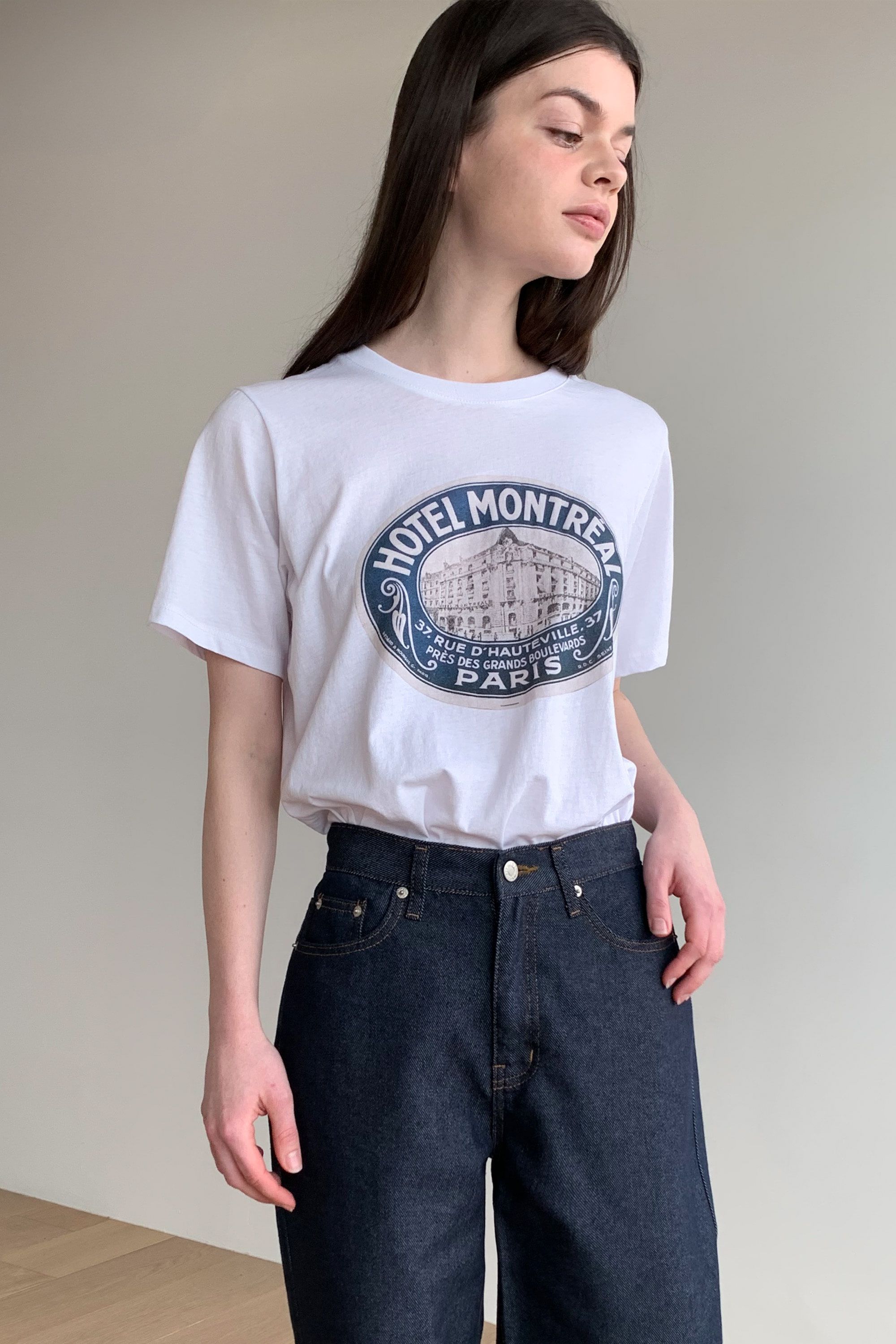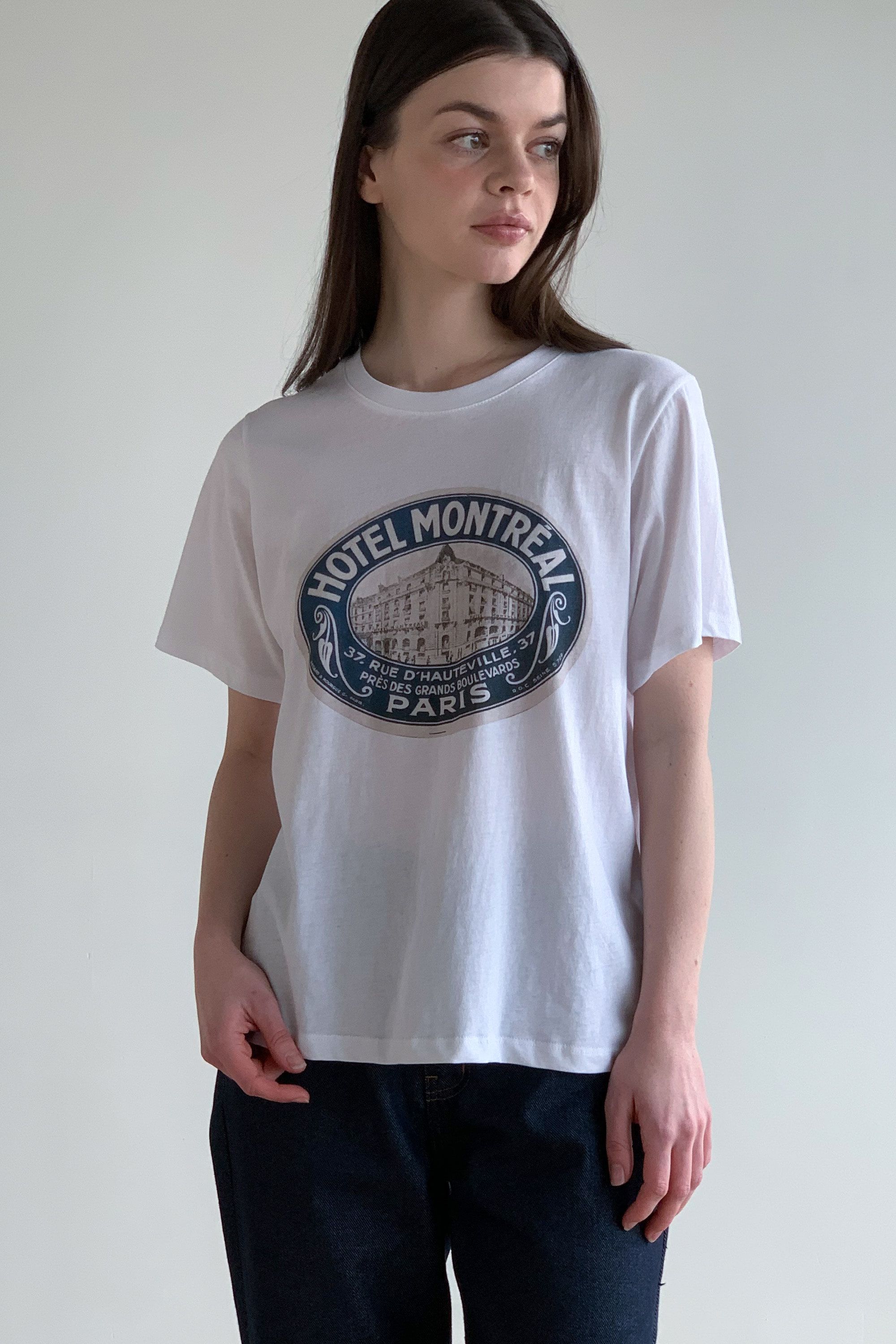 韓國女裝連線 - 巴黎街角短袖上衣-白 (FREE)