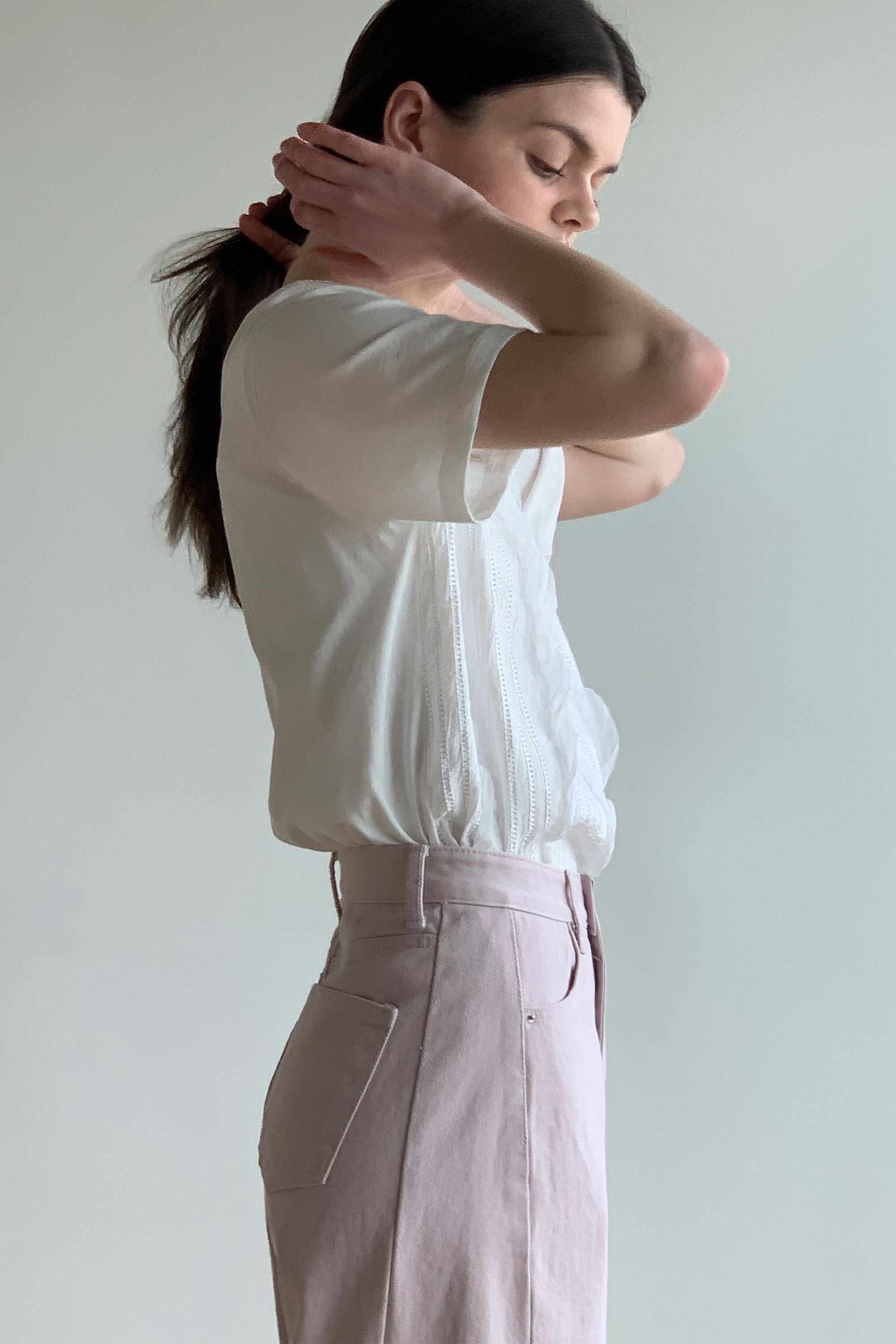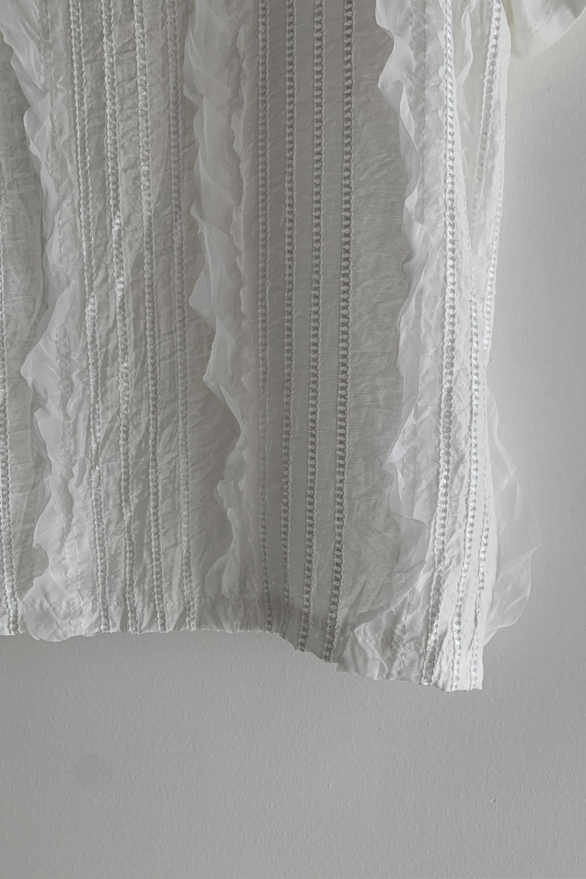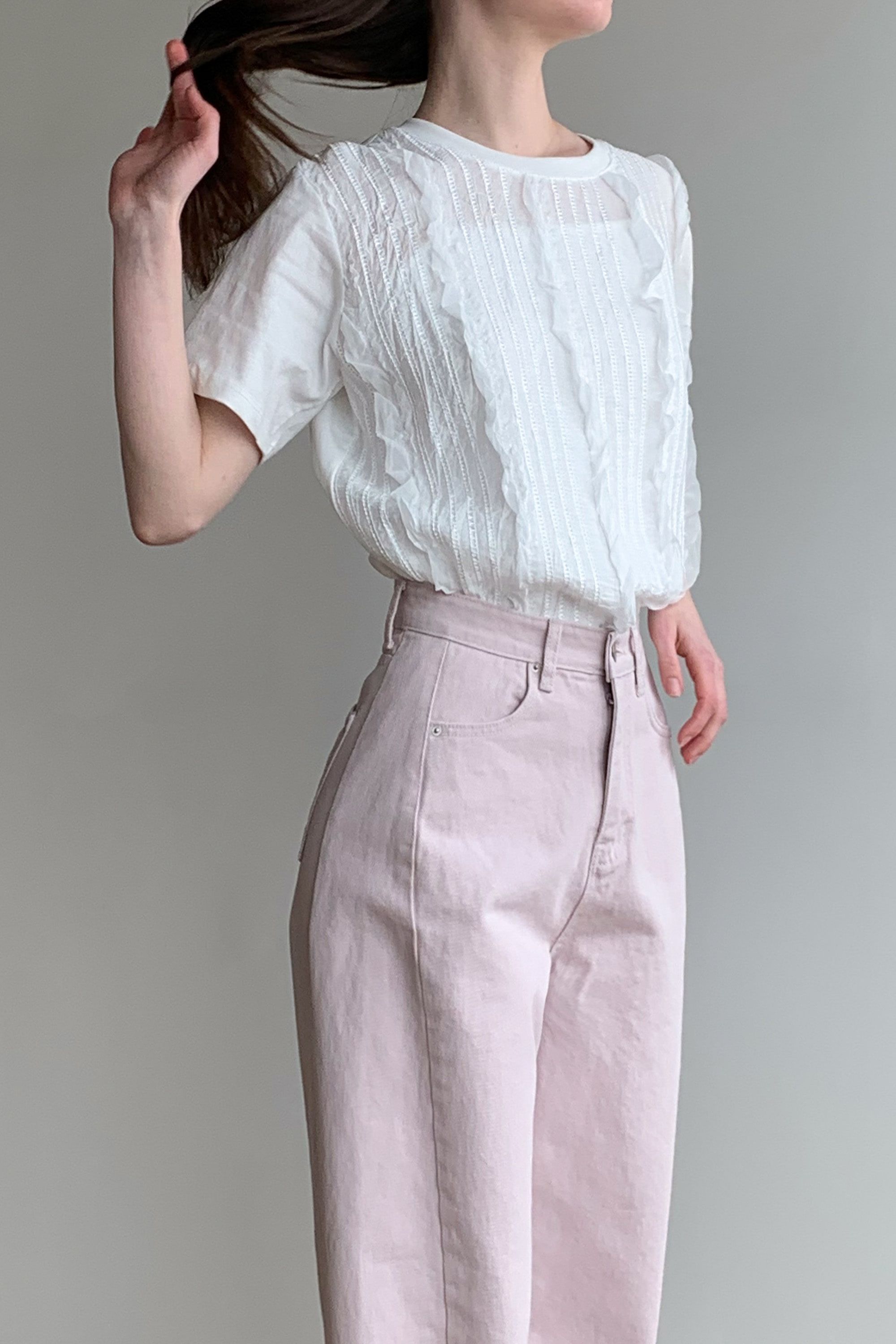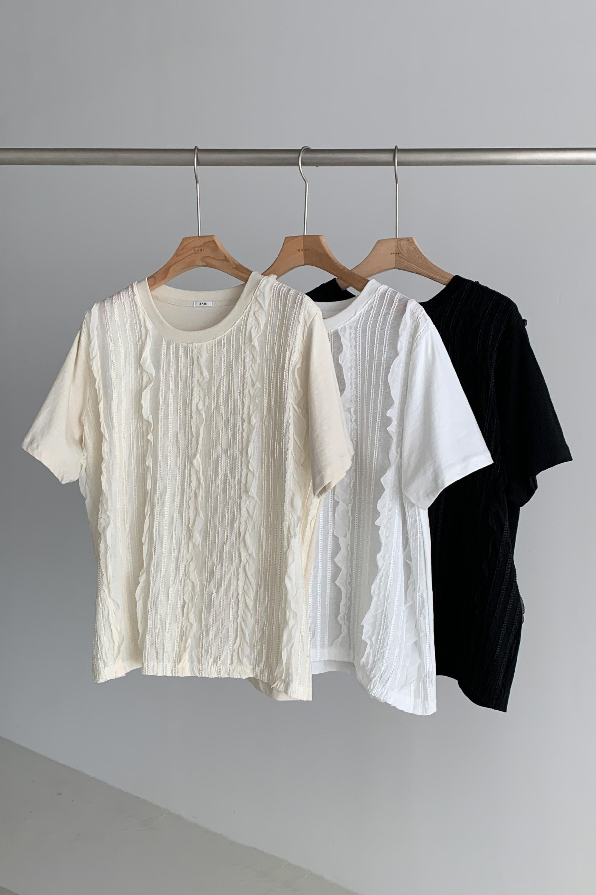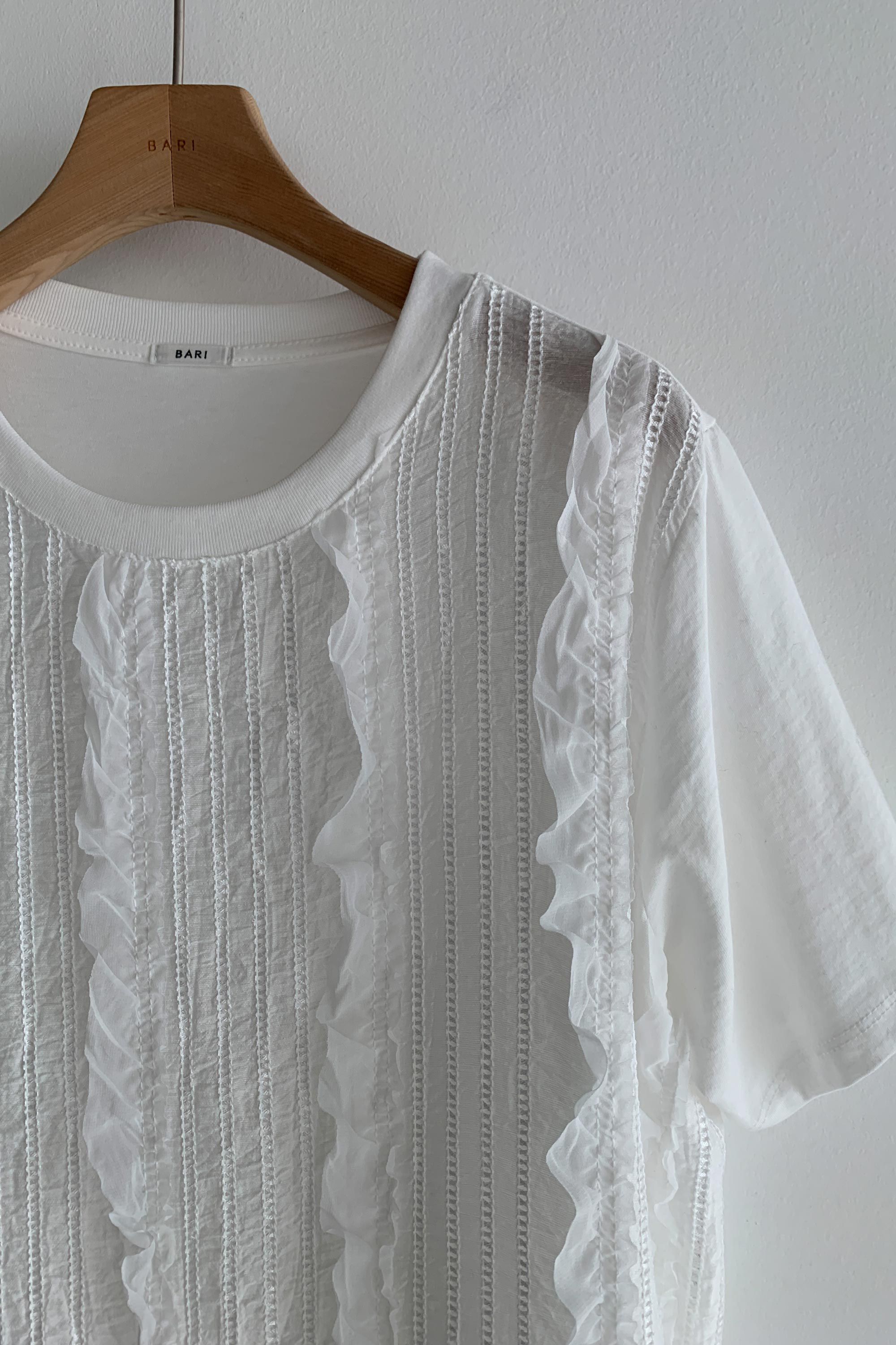 韓國女裝連線 - 蕾絲點綴微透短袖上衣-白 (FREE)