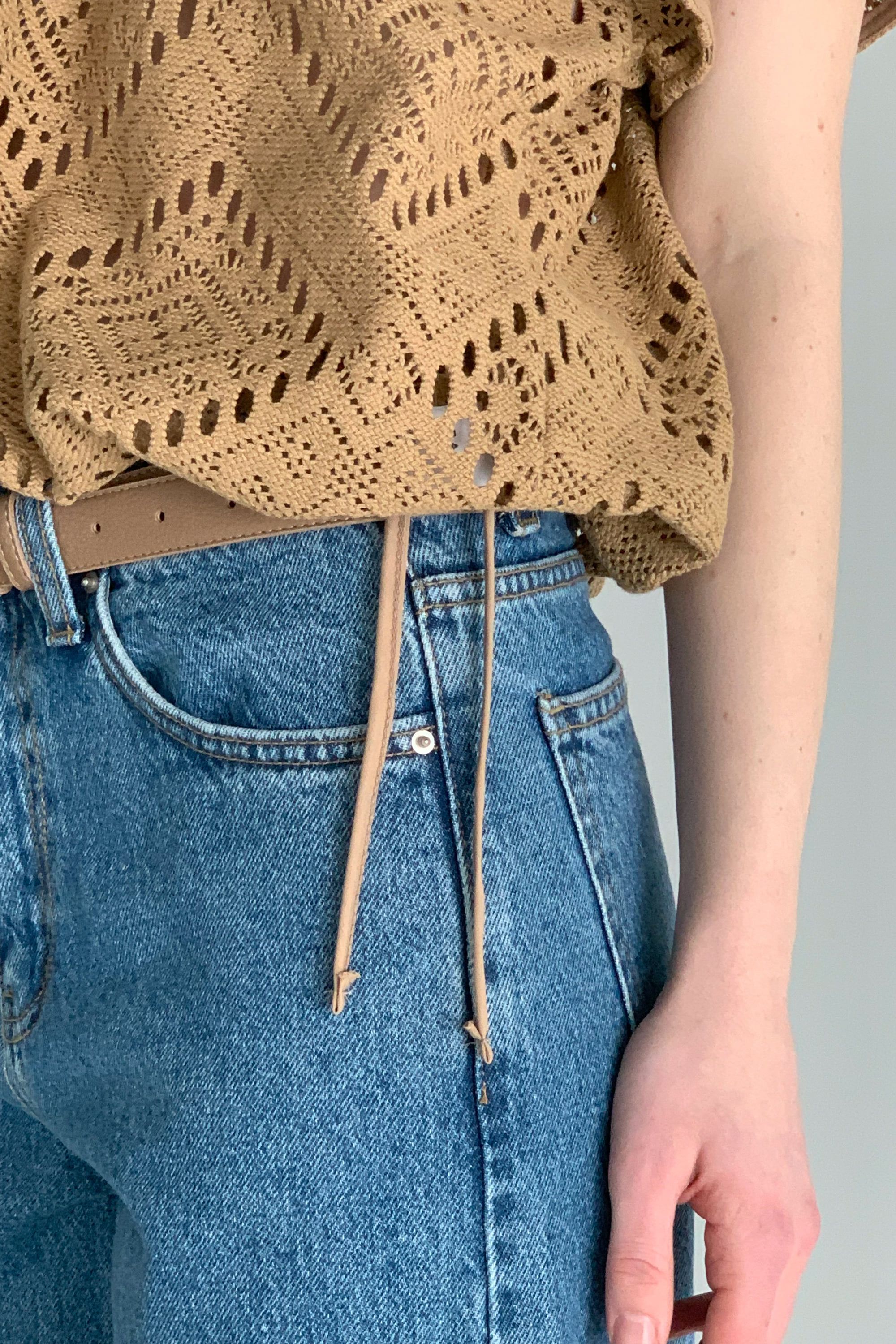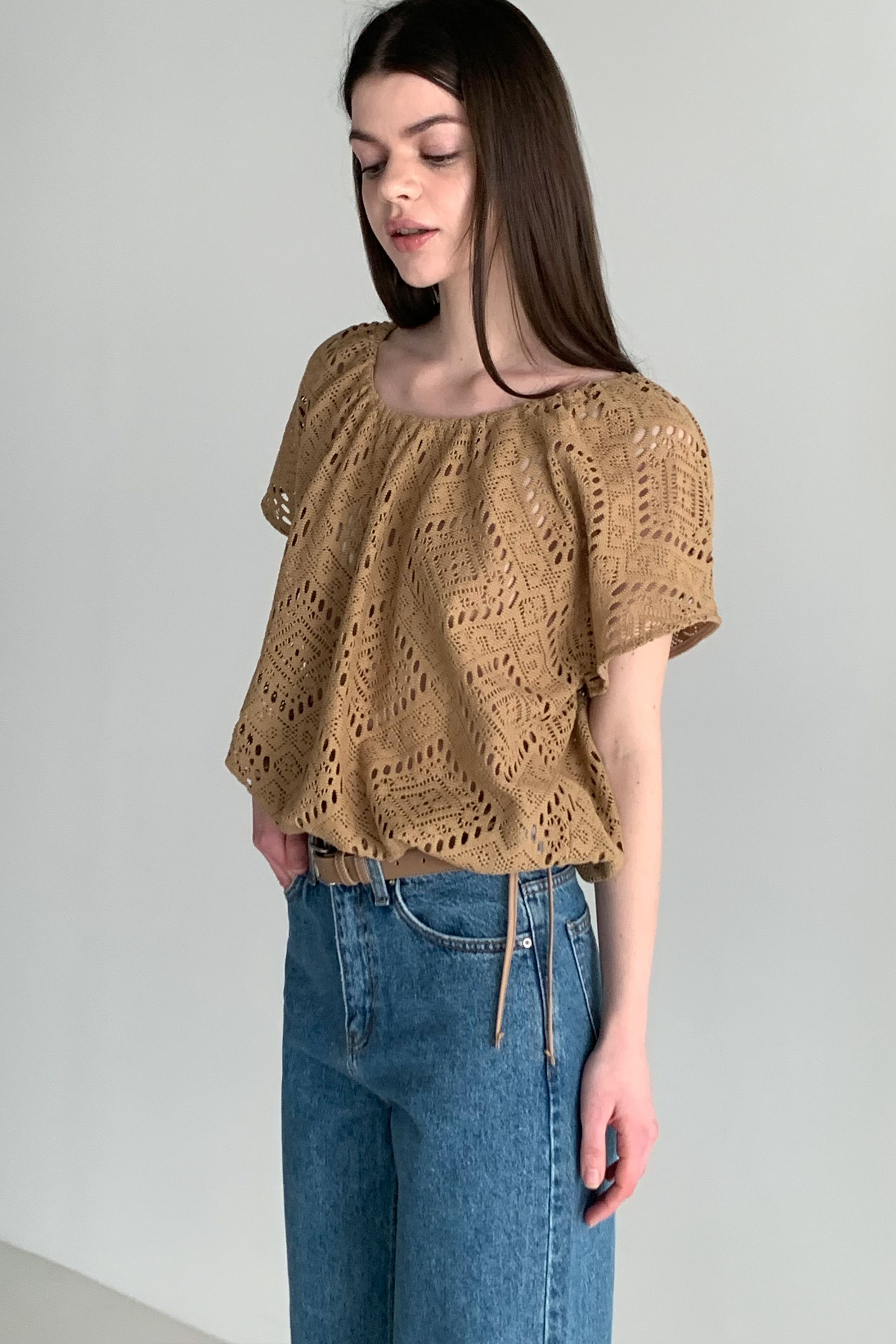 • 品名:風情鏤空下襬抽繩短袖上衣