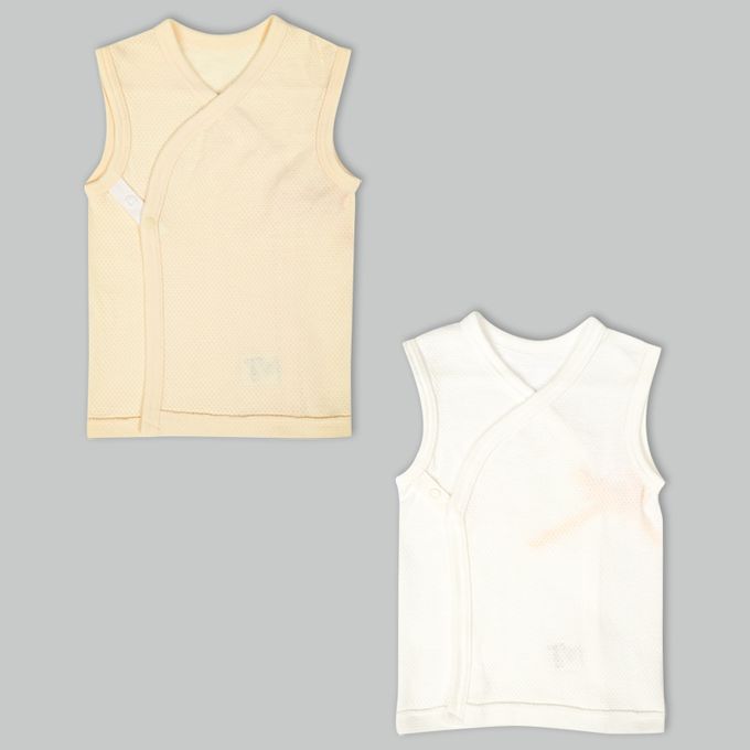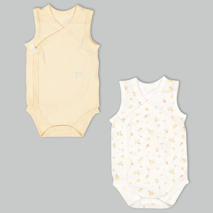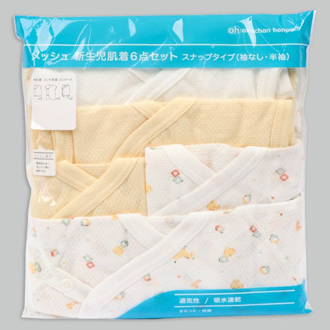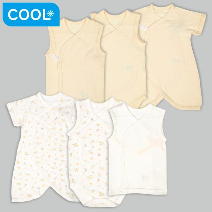 akachan honpo - 網眼新生兒內衣6件組按扣款-無袖短袖 玩具-黃色 (50cm)