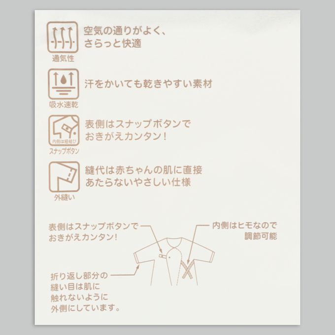縫份設計成不會直接接觸寶寶肌膚的舒適款式