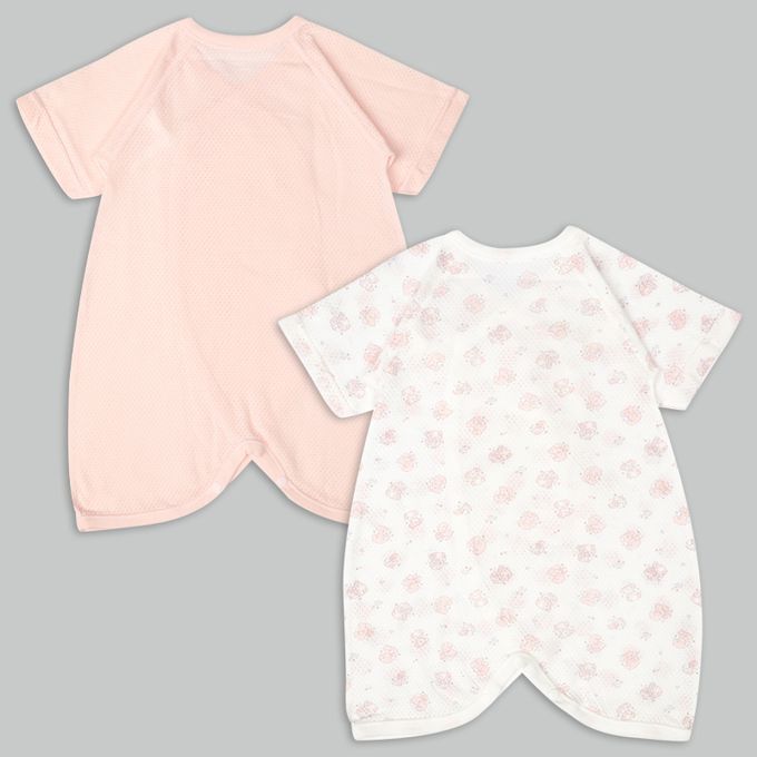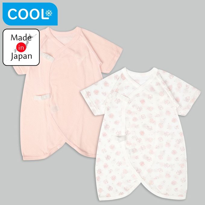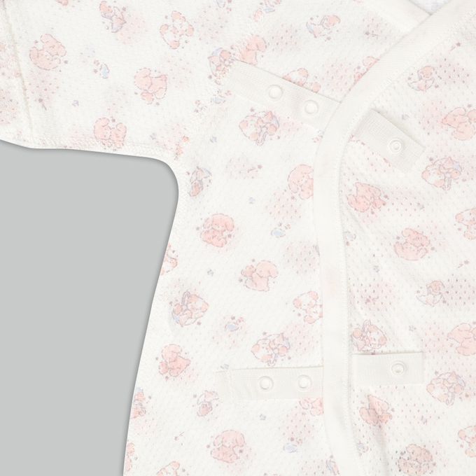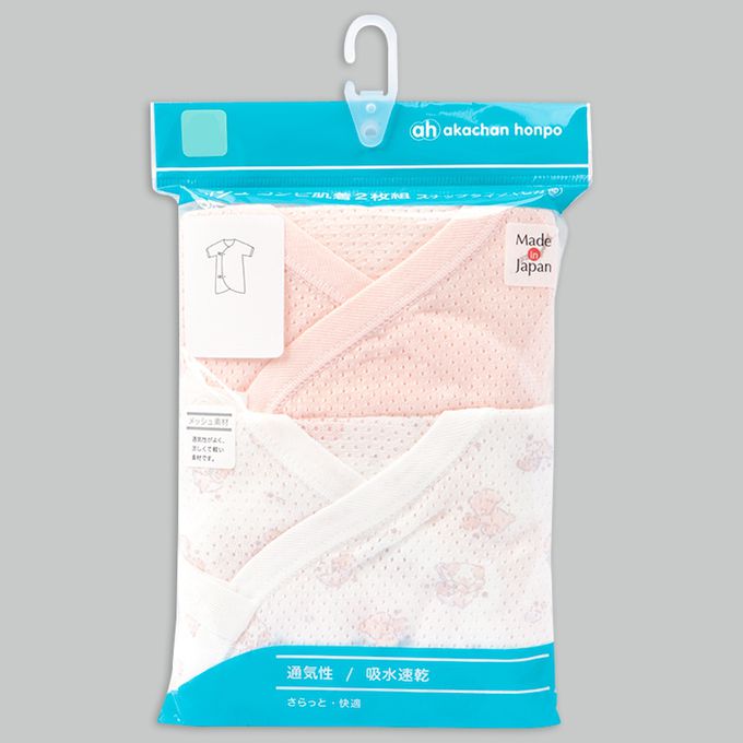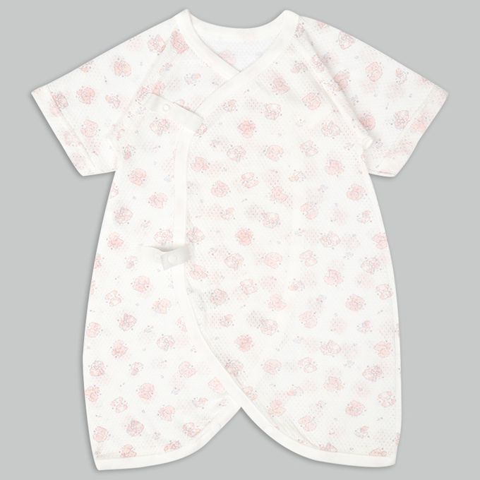 新生兒7分袖網眼蝴蝶裝2件組-動物-粉紅色 (50~60cm)-日本製
