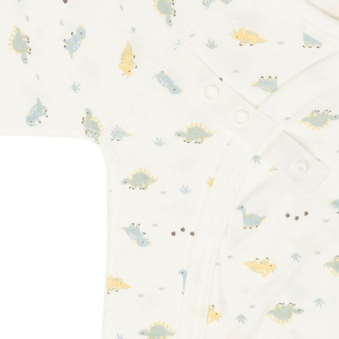 新生兒長袖包屁衣2件組按扣款-恐龍-綠色 (50~60cm)-日本製