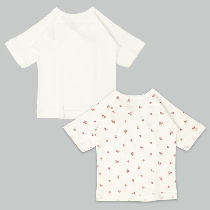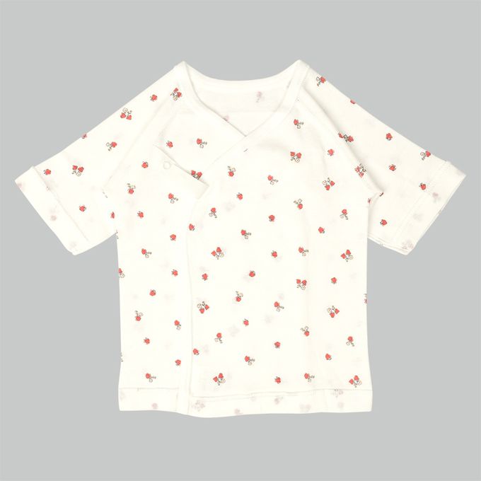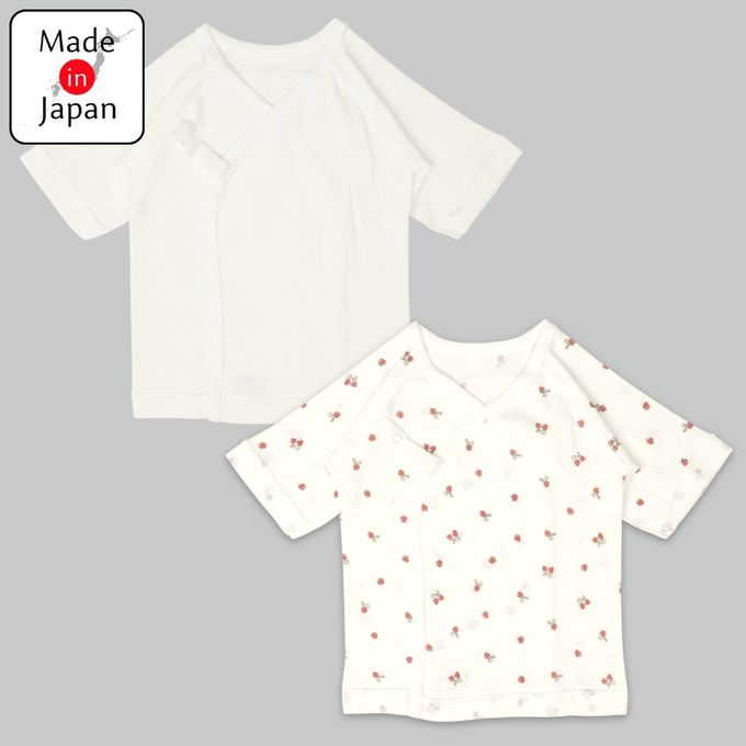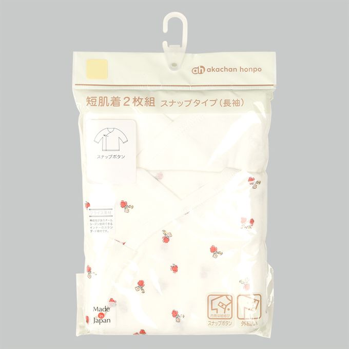 新生兒長袖肚衣2件組 按扣款-草莓-粉紅色 (50cm)-日本製