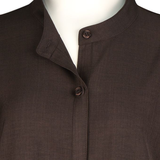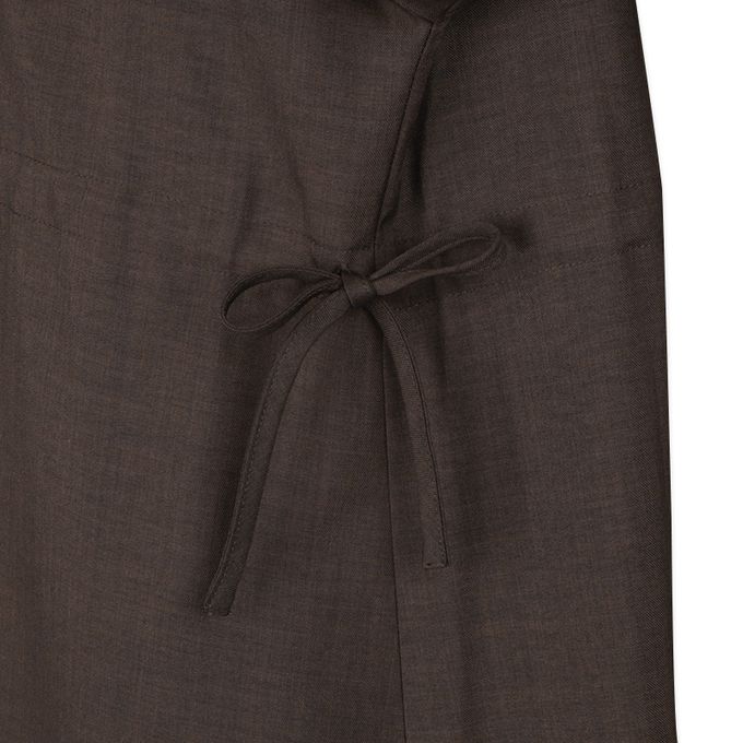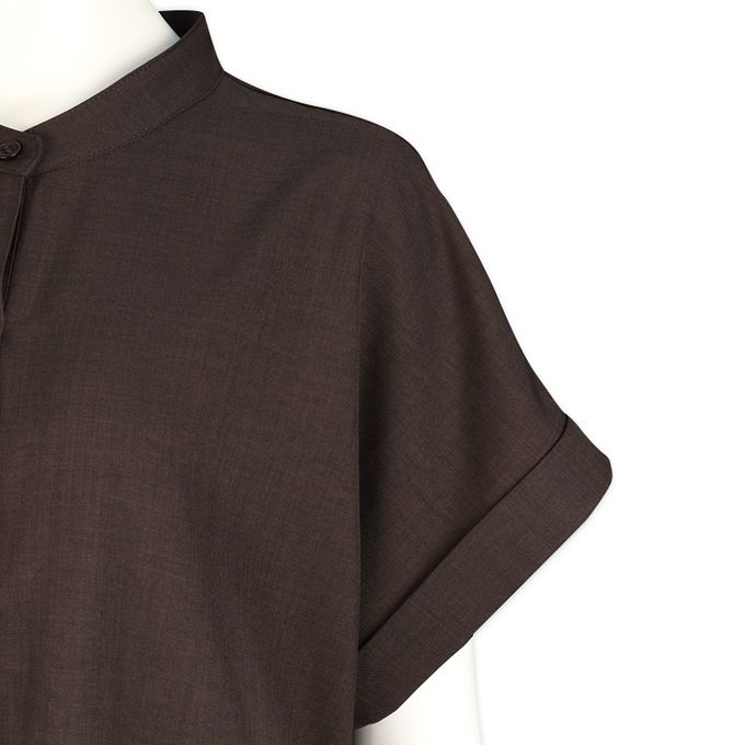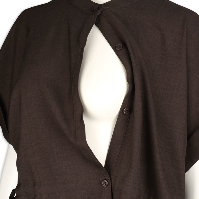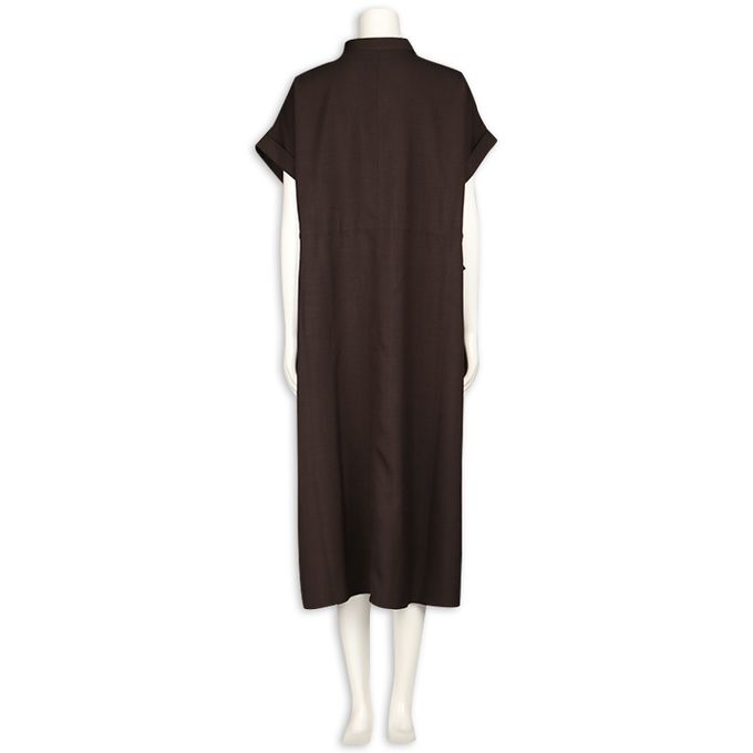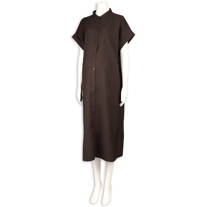 選用麻混合纖維斜紋布的短袖前開式抽繩洋裝