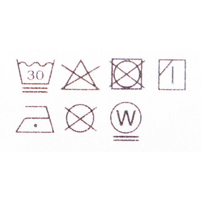 注意事項:●標示內容遵照台灣法規之規定。●請使用洗衣網。●請使用不含螢光增白劑的洗劑。●請勿熨燙裝飾品部分。