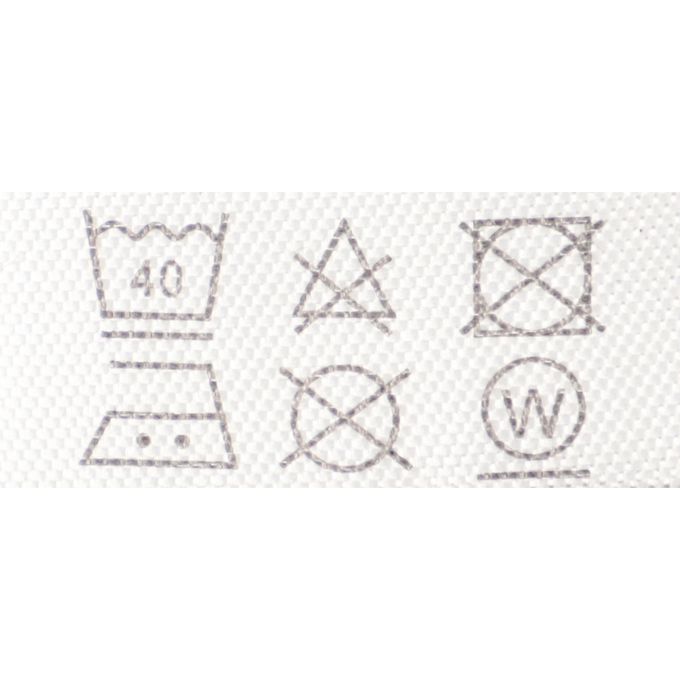 注意事項:●標示內容遵照台灣法規之規定。●請使用不含螢光增白劑的洗劑。●請勿熨燙釦子部分。●請勿熨燙印花部分。