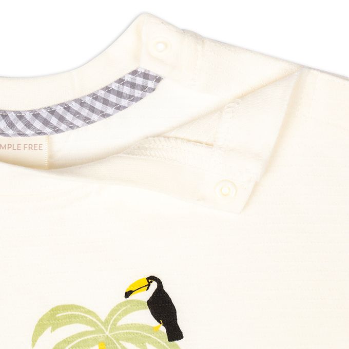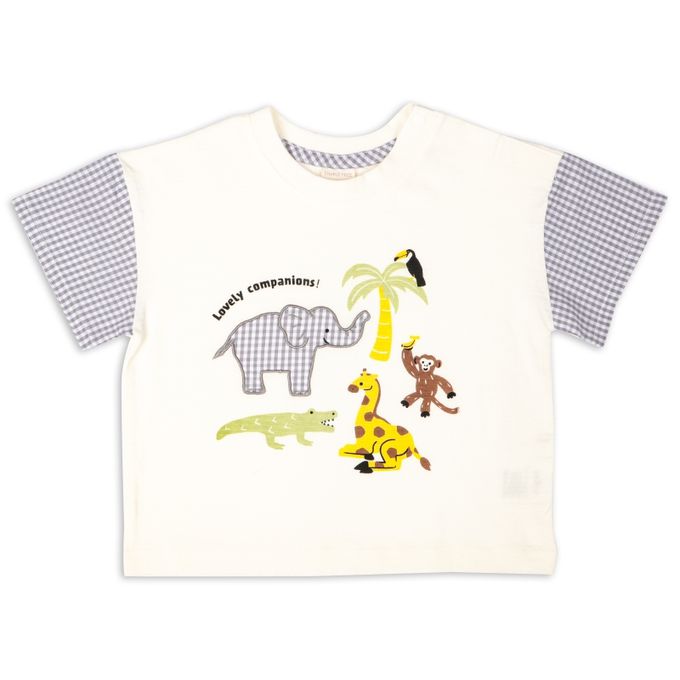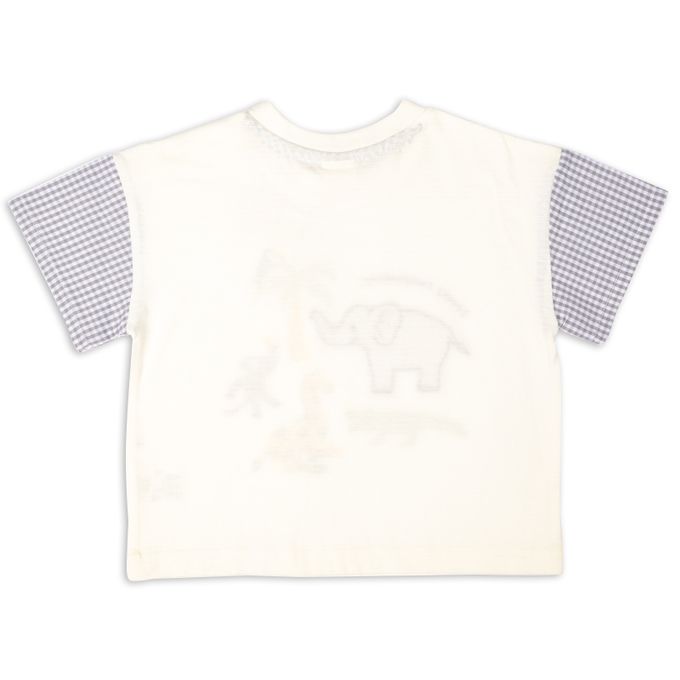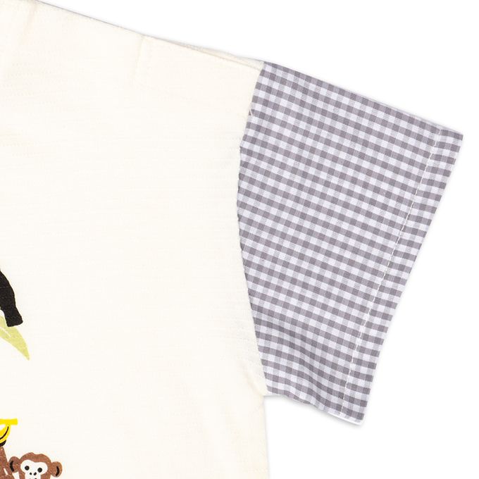 短袖T恤 格紋袖-幼兒-米白色