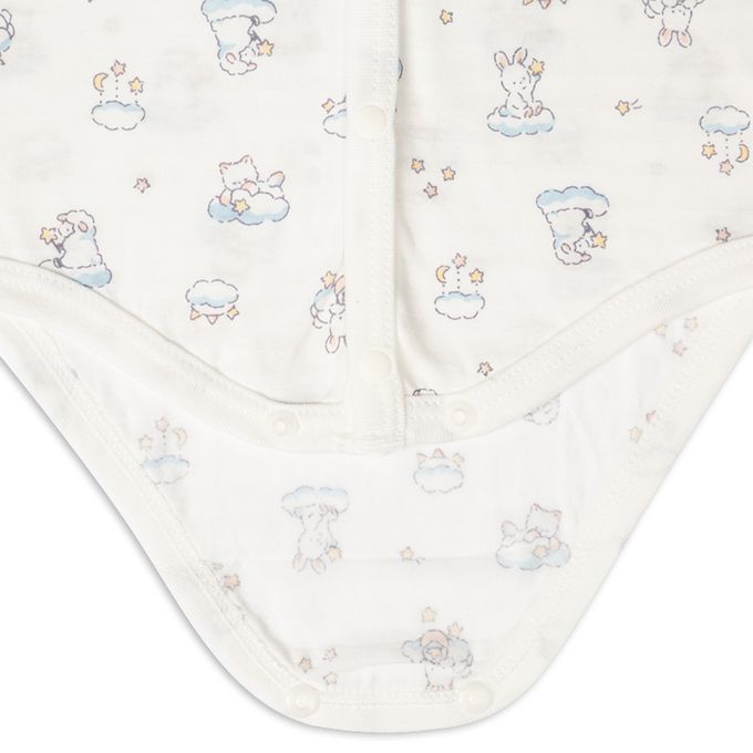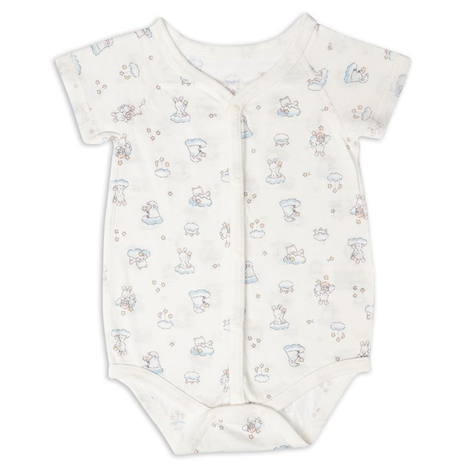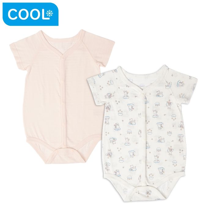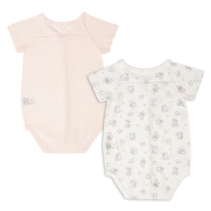 短袖包屁衣2件組涼爽純棉-前開式 動物-粉紅色