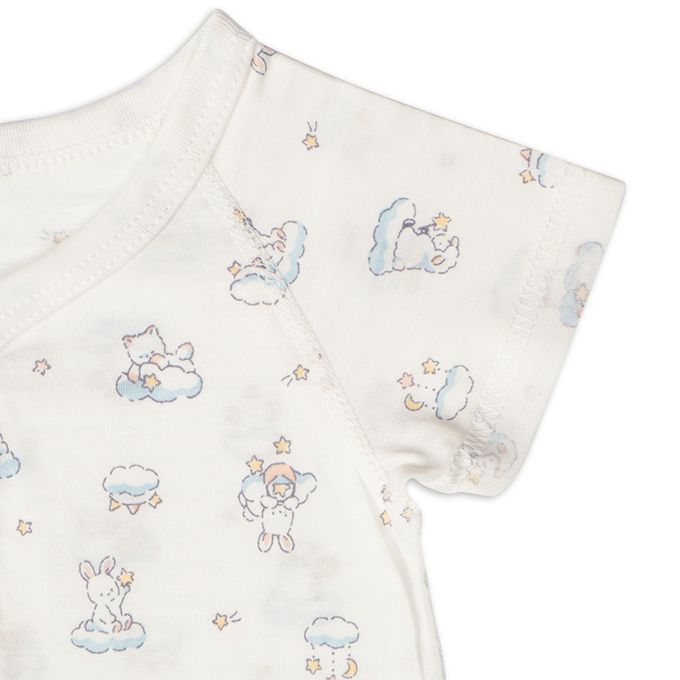 akachan honpo - 短袖包屁衣2件組涼爽純棉-套頭式 動物-黃色