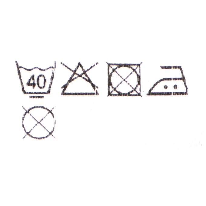 注意事項:●標示內容遵照台灣法規之規定。●請使用不含螢光增白劑的洗劑。●請勿熨燙釦子部分。●熨燙請使用墊布。