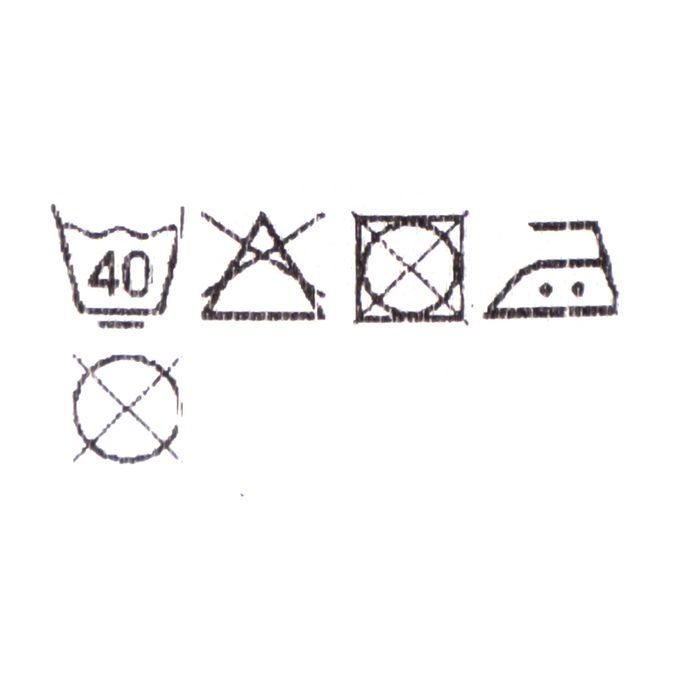 注意事項:●標示內容遵照台灣法規之規定。●請使用不含螢光增白劑的洗劑。●請勿熨燙釦子部分。●熨燙請使用墊布。