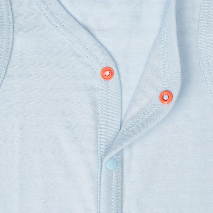 短袖包屁衣2件組涼爽純棉-前開式 企鵝-淺藍色