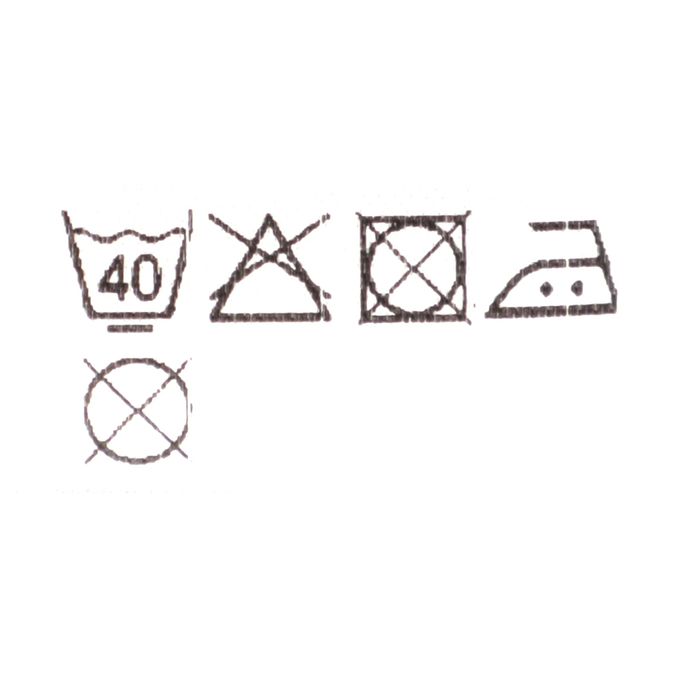 注意事項:●標示內容遵照台灣法規之規定。●請使用不含螢光增白劑的洗劑。●請勿熨燙釦子部分。●熨燙請使用墊布。
