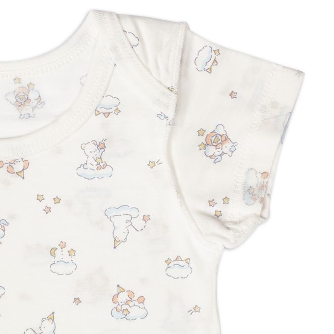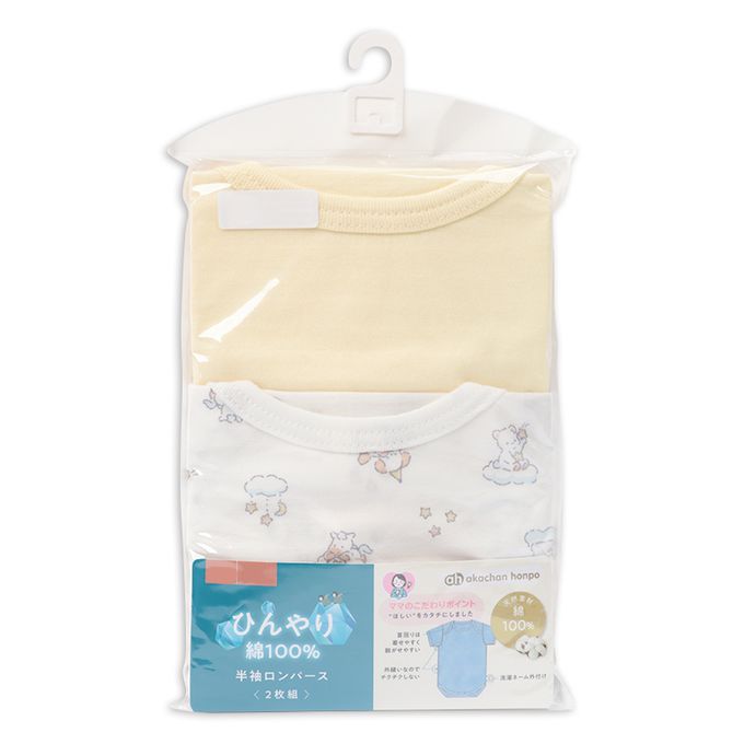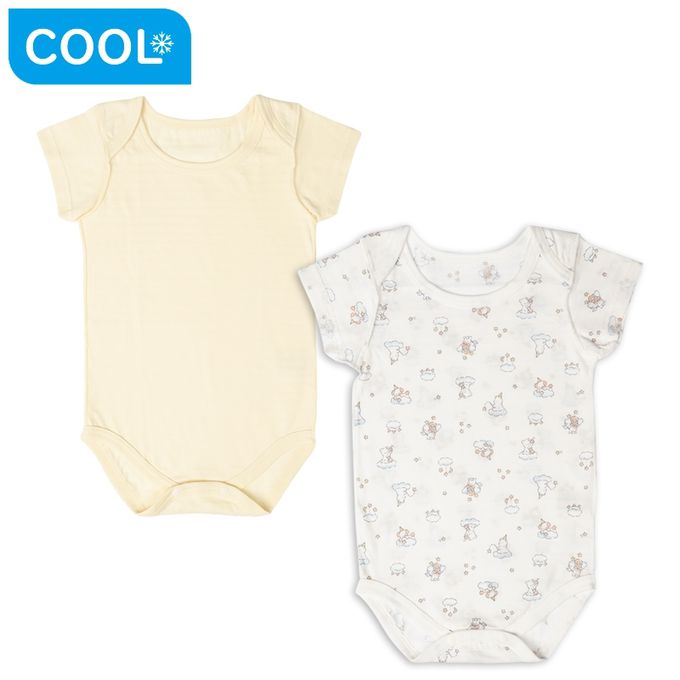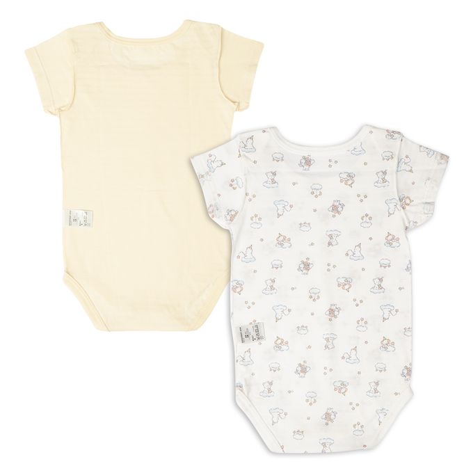 akachan honpo - 短袖包屁衣2件組涼爽純棉-套頭式 動物-黃色