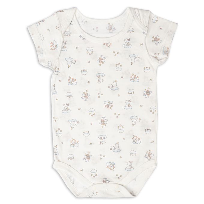 短袖包屁衣2件組涼爽純棉-套頭式 動物-黃色