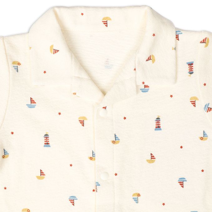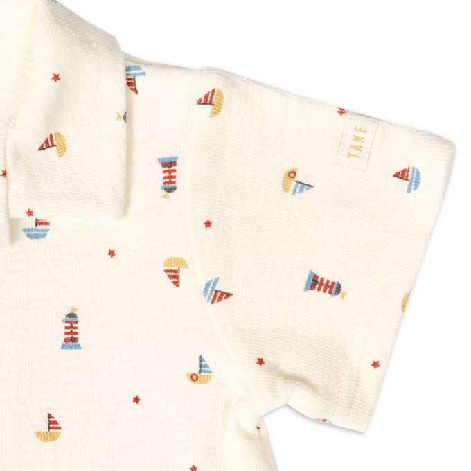 共2款:有領POLO衫風搭配小熊刺繡、襯衫風搭配帆船滿版印花圖案。