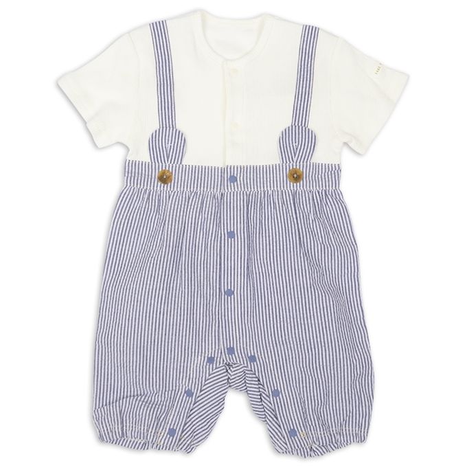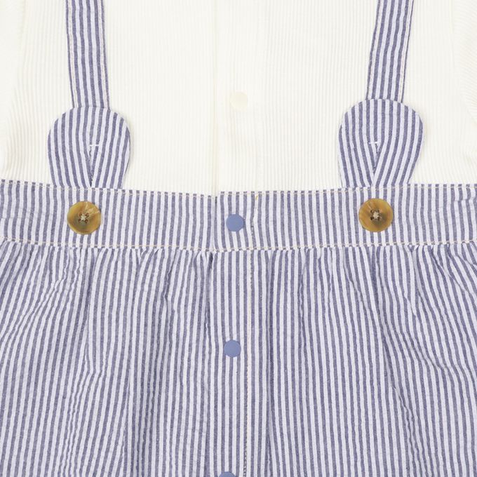 akachan honpo - 短袖假兩件兔裝-直條紋-深藍色