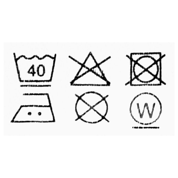 • 注意事項:●標示內容遵照台灣法規之規定。●請使用洗衣網。●請使用不含螢光增白劑的洗劑。●請勿熨燙釦子部分。●請勿熨燙裝飾品部分。●熨燙請使用墊布。
