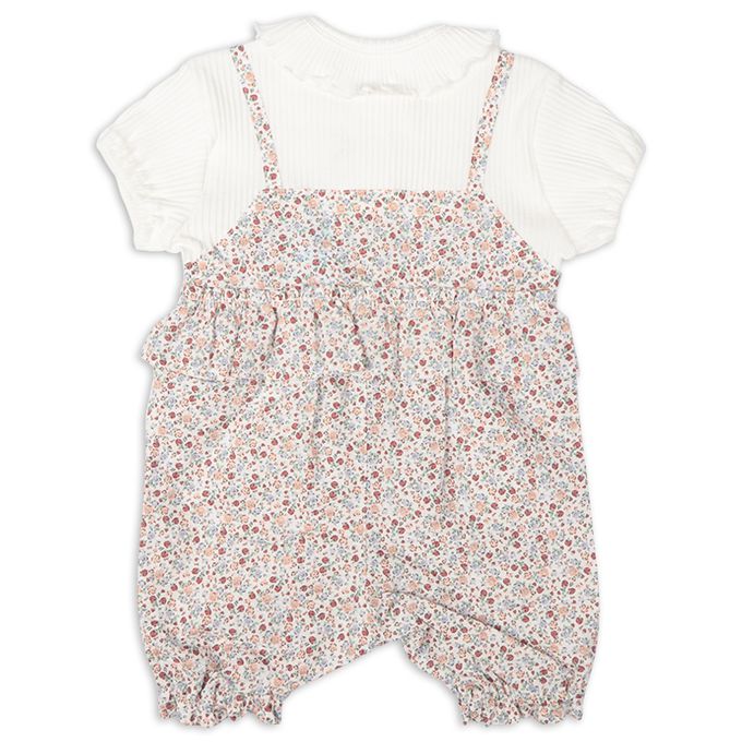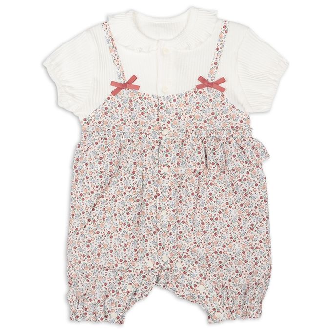 akachan honpo - 短袖假兩件兔裝-小花-粉紅色