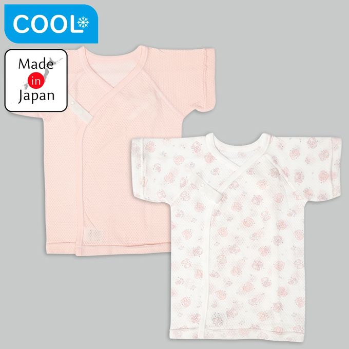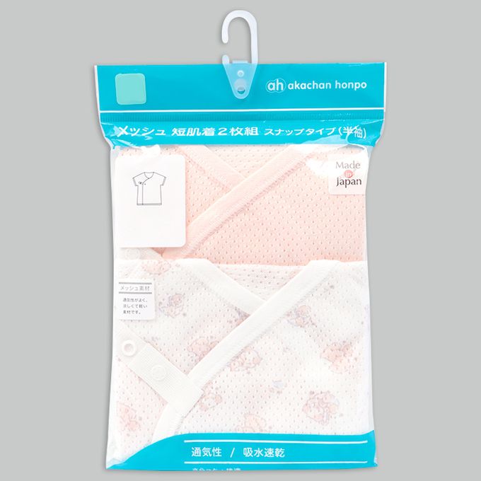短袖網眼肚衣2件組-動物-粉紅色-日本製