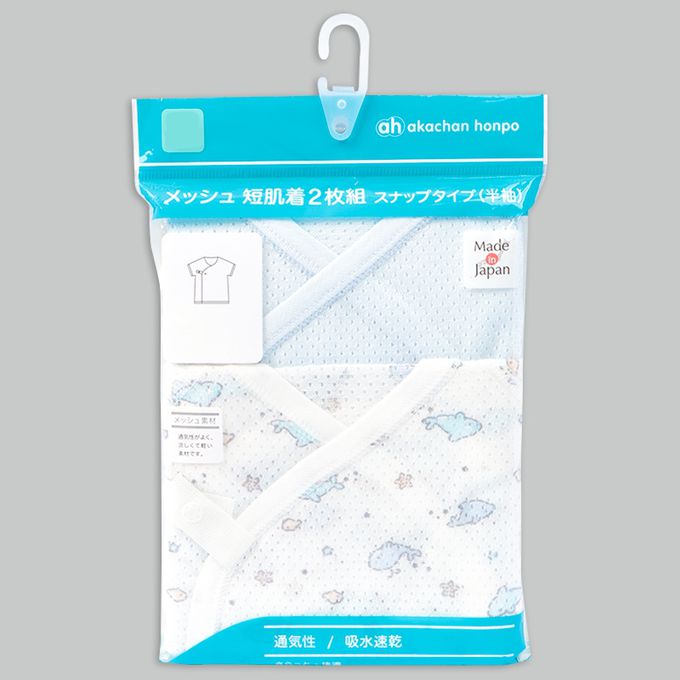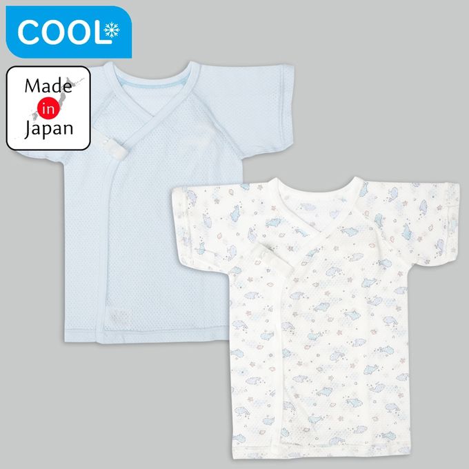 短袖網眼肚衣2件組-鯨魚-淺藍色-日本製