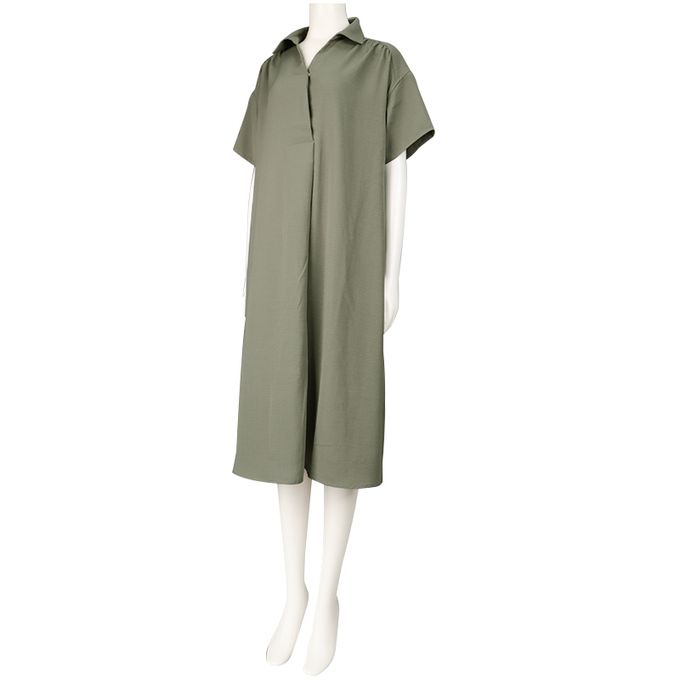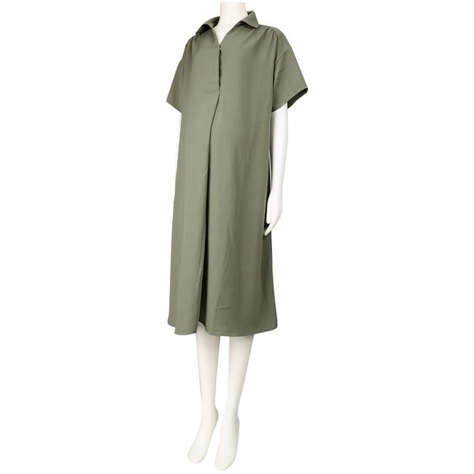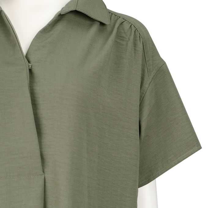 短袖襯衫洋裝-軍綠色
