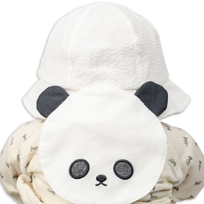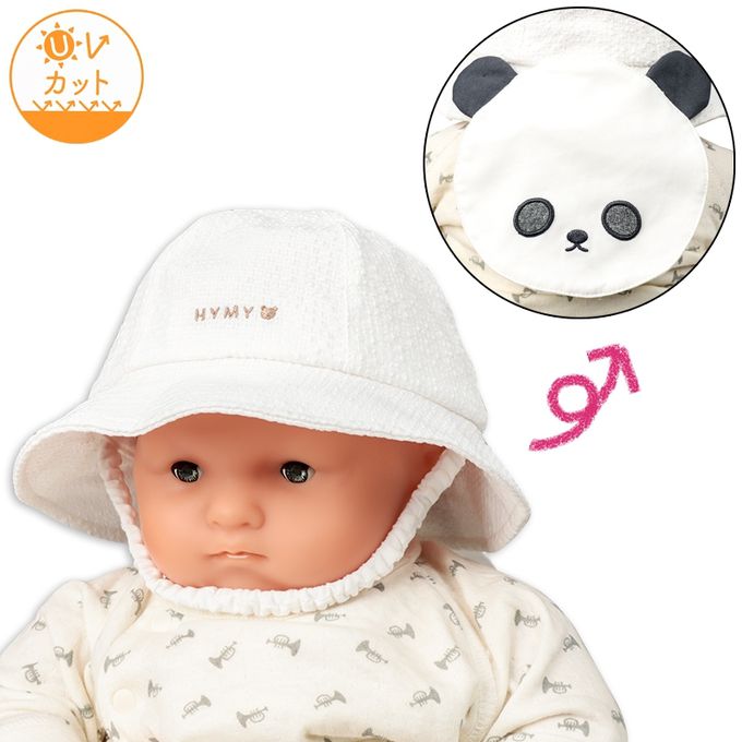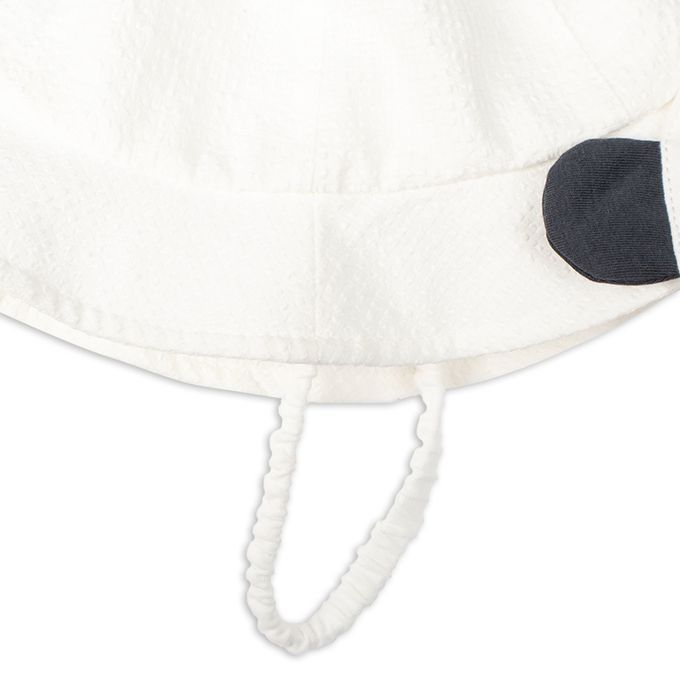 下巴有鬆緊帶可防止被風等吹落。下巴鬆緊帶用布料裹住,使膚觸更舒適。