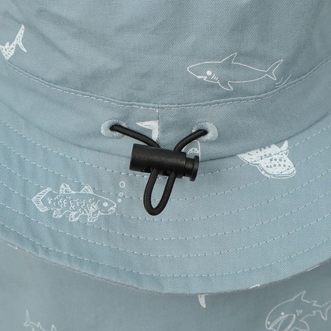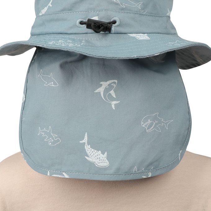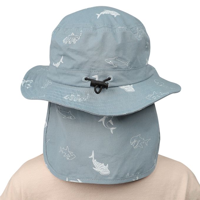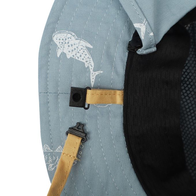 有附外出活動時非常需要的防曬遮陽布。附有可防止被風等吹落的下巴繩帶。