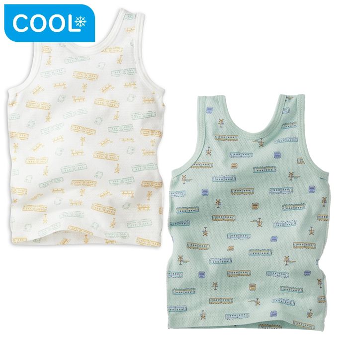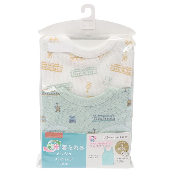 網眼坦克背心2件組前後皆可穿-電車-綠色