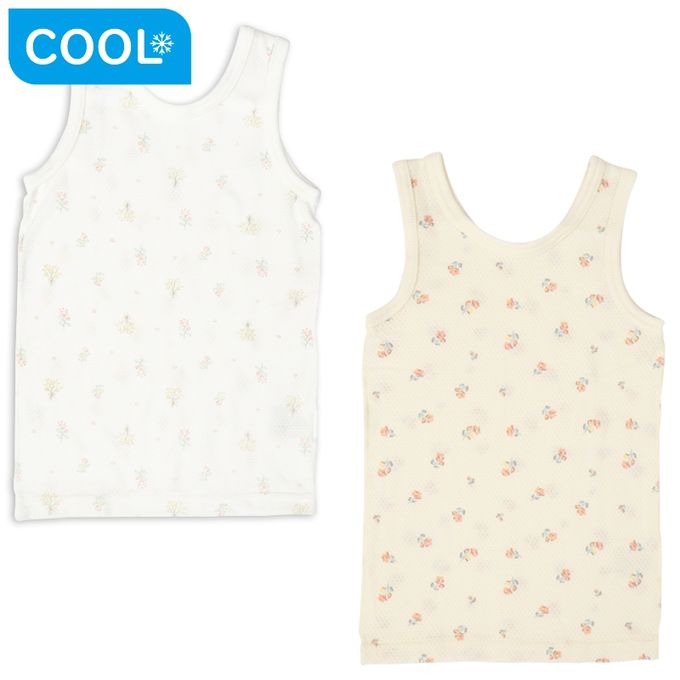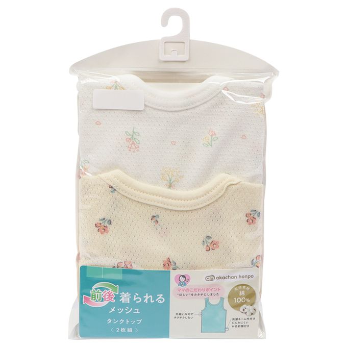 網眼坦克背心2件組前後皆可穿-小花-象牙白色